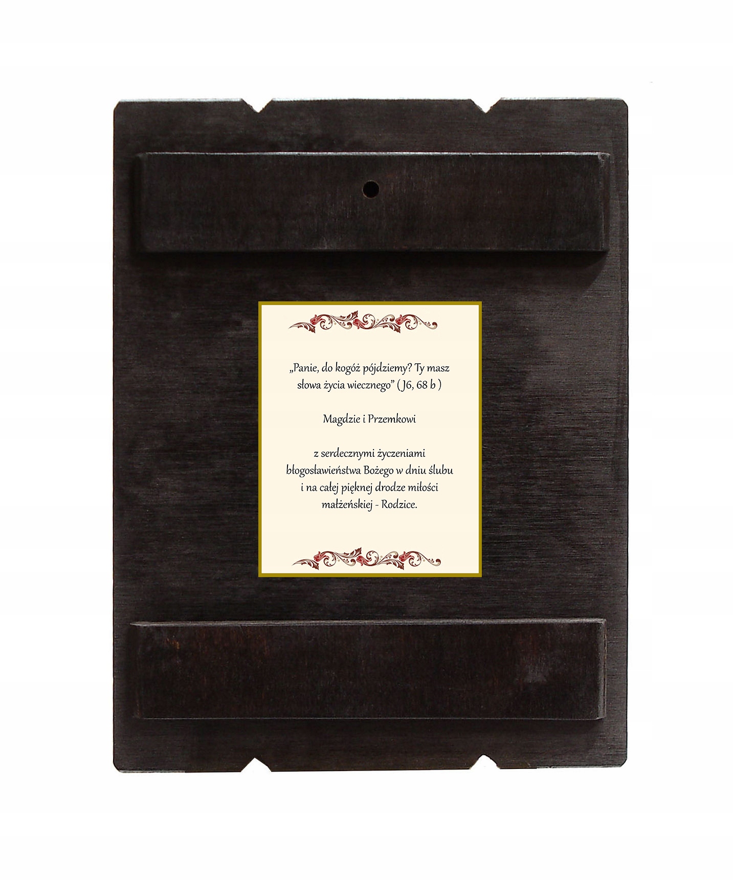 Посвята виготовлена на самоклеючому папері, завдяки чому ікона не жирний і не стирчить зі стіни. Папір закінчується золотою облямівкою. Присвяту на іконі ми ставимо самі. Значною мірою ми зосереджуємося на яскравих і радісних кольорах, щоб відобразити цю щасливу подію: Перше Святе Причастя, Весілля, Хрещення, Миропомазання чи ювілеї.