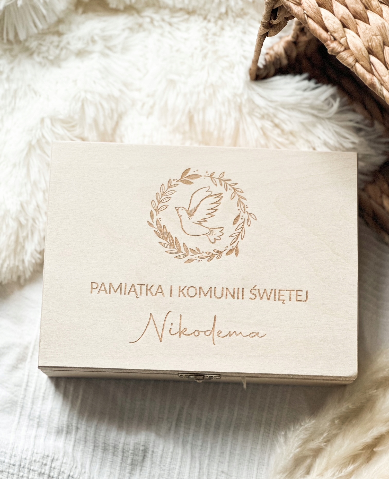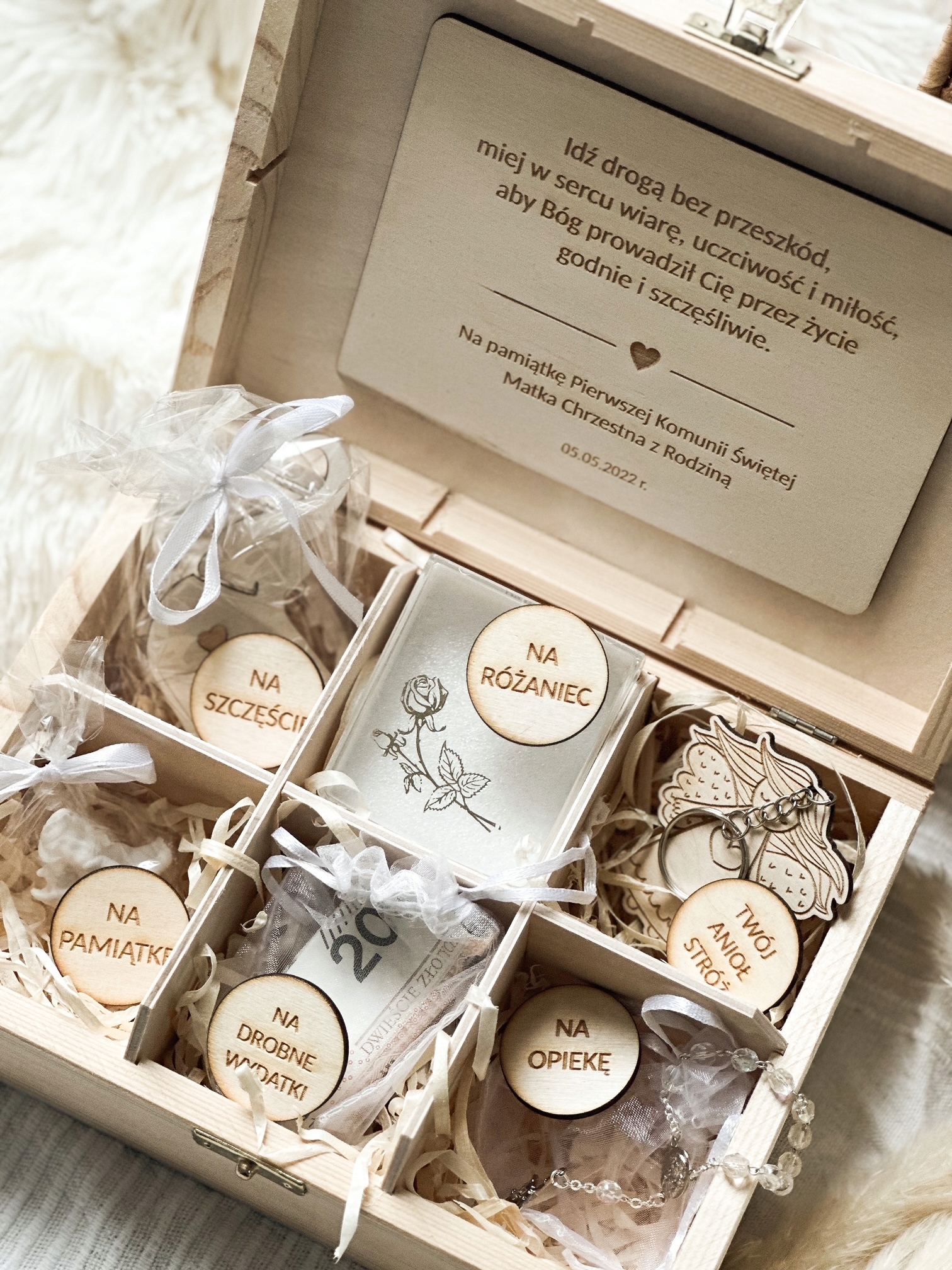 Дерев'яна шкатулка з відділеннями як унікальний подарунок до Першого Святого Причастя. Зробіть свій подарунок унікальним!