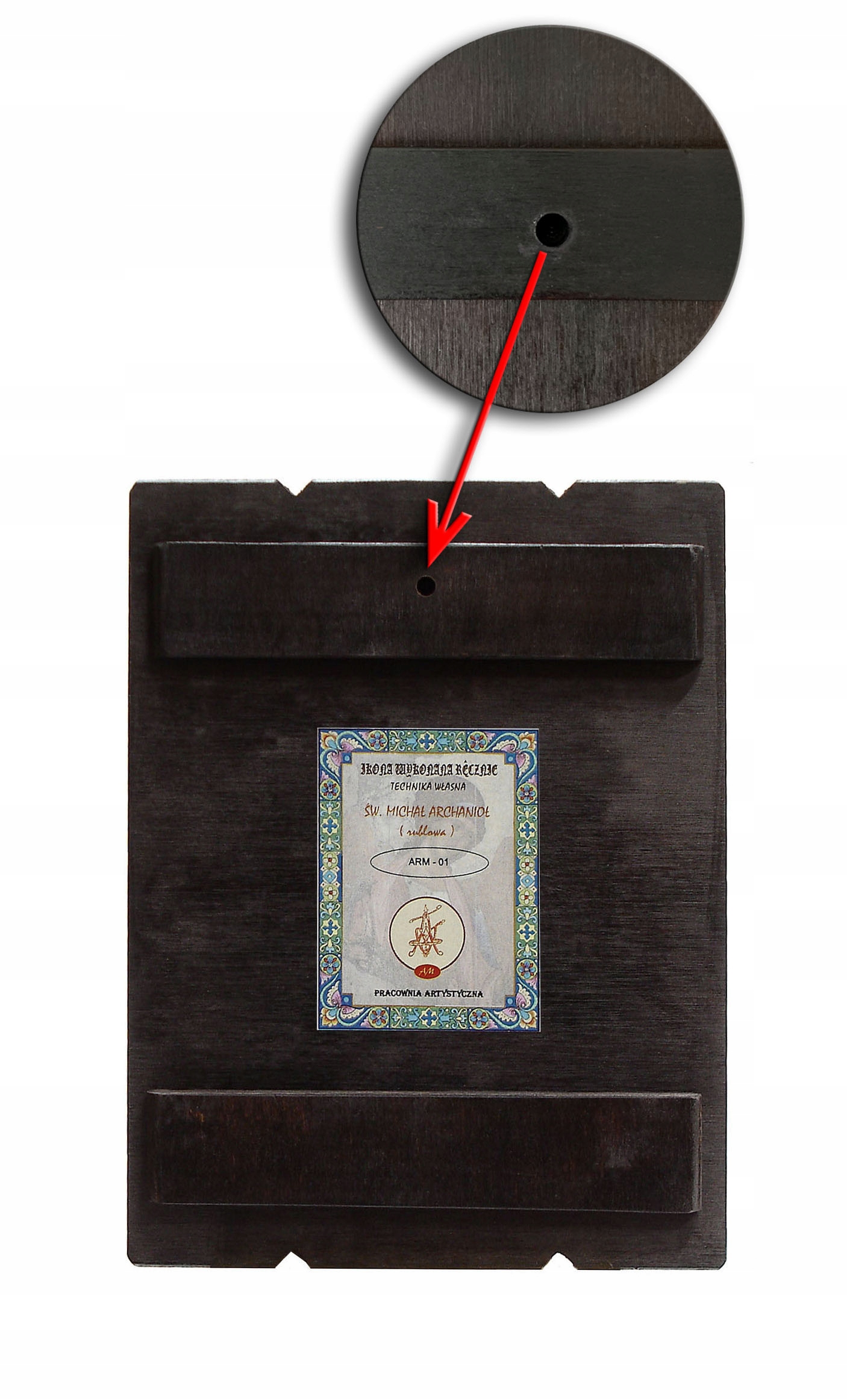 - просвердлений отвір ззаду для підвішування ікони li>