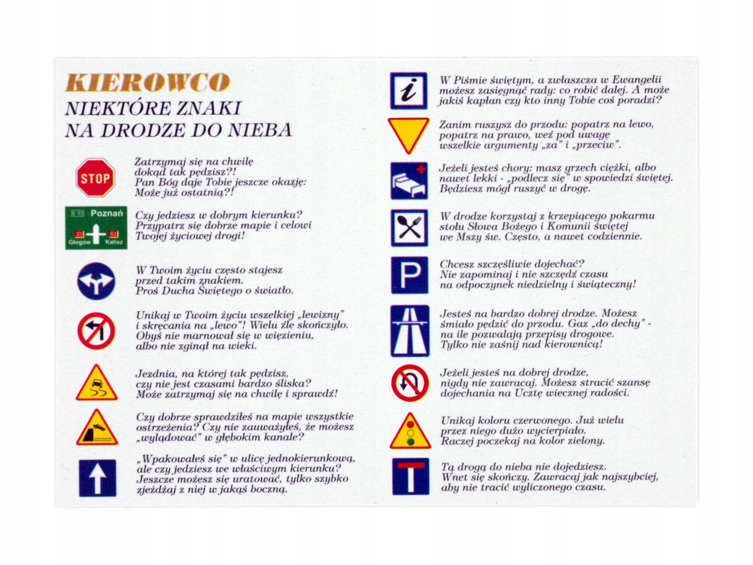 Брошура вдвічі із зображенням покровителя водіїв та текстом молитви для водіїв.