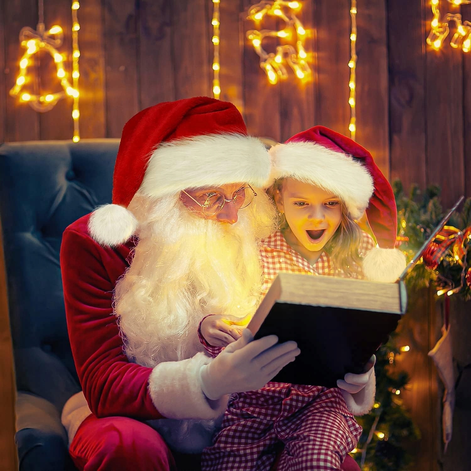 ² · 【Теплий і розкішний різдвяний капелюх】 Цей м'який червоний плюшевий різдвяний капелюх обережно оброблений білим штучним хутром. Товста підкладка капелюхів Санта забезпечує тепло навіть при виході на сніг. Насолоджуйтесь чудовим та теплим новим роком.