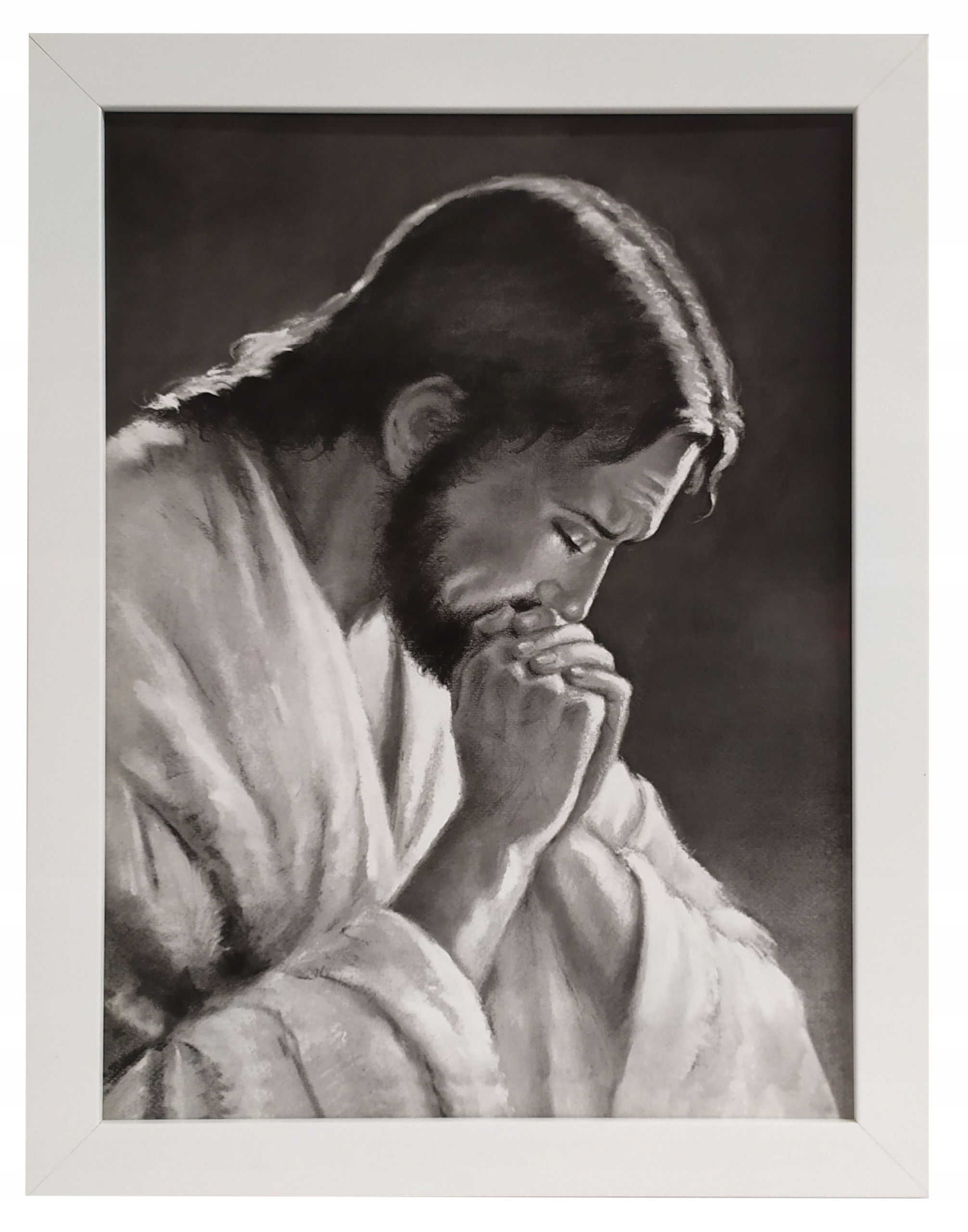 СВЯТИЙ ОБРАЗ ЧОРНО-БІЛОГО ІСУСА В БІЛІЙ РАМКІ 35Х45