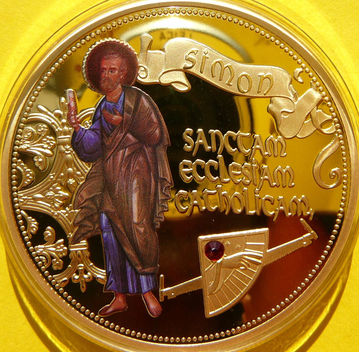 НА АУКЦІОНІ ПРЕДСТАВЛЯЄТЬСЯ ЧУДОВИЙ ОРИГІНАЛ З КОЛЕКЦІЇ ГІГАНТСЬКИЙ КОЛЕКЦІЙНИЙ НУМІЗМАТ, ПОКРИТИЙ ЩИСТИМ ЗОЛОТОМ - СВЯТИЙ СИМОН, його КРЕДО: СВЯТА КАТОЛИЦЬКА ЦЕРКВА - ІСУС і 12 АПОСТОЛІВ - із серії: АПОСТОЛЬСЬКЕ КРЕДО - ВЕЛЕТЕНЬ - ДЗЕРКАЛО МАРКА - М'ЯТА + КРИСТАЛ SWAROVSKI - НА ІНШИХ АУКЦІОНАХ Я ВИДАЮ ІНШІ 11 НУМІЗМАТІВ З ЦІЄЇ СЕРІЇ, ЯК ПОКАЗАНО НА ОСТАННІХ ФОТОГРАФІЯХ - БУДЬ ЛАСКА, ПЕРЕГЛЯДІТЬ