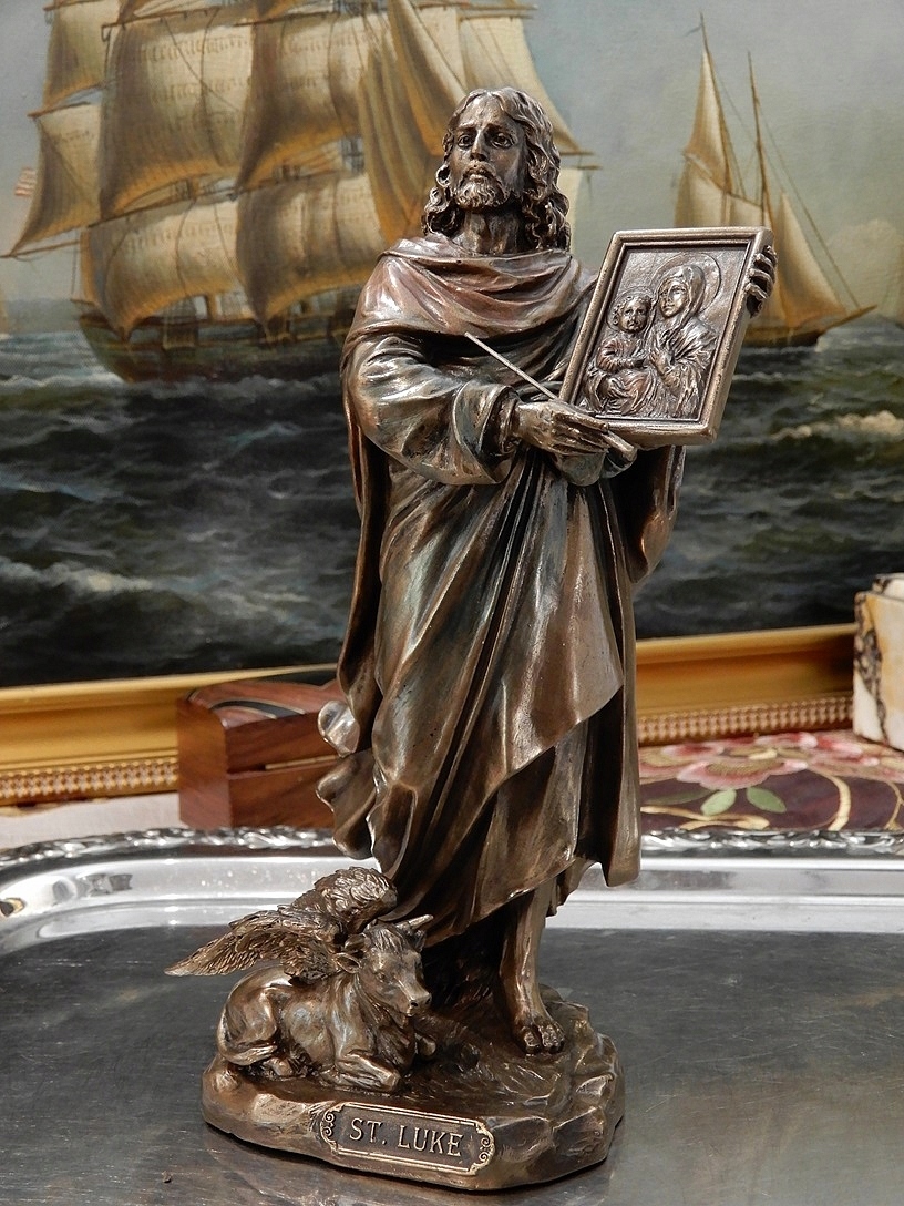 Запрошую придбати чудову фігурку із зображенням святого євангеліста Луки. Він є покровителем Іспанії, палітурників, хірургів, художників, скульпторів, графіків, істориків, нотаріусів і ювелірних майстрів.