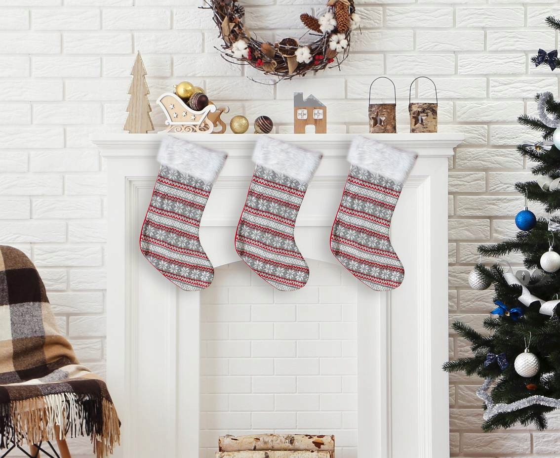 Камінні шкарпетки - це класика новорічного декору - вони створюють неповторну атмосферу і привертають увагу домочадців і гостей. У них можна заховати подарунки або залишити їх як прикраси, щоб додати в інтер'єр тепла і затишку. Пропоновані камінні шкарпетки характеризуються товстим матеріалом, ретельною обробкою та міцною ручкою, тому їх можна безпечно повісити над каміном, на балюстраді, полиці чи дверях.