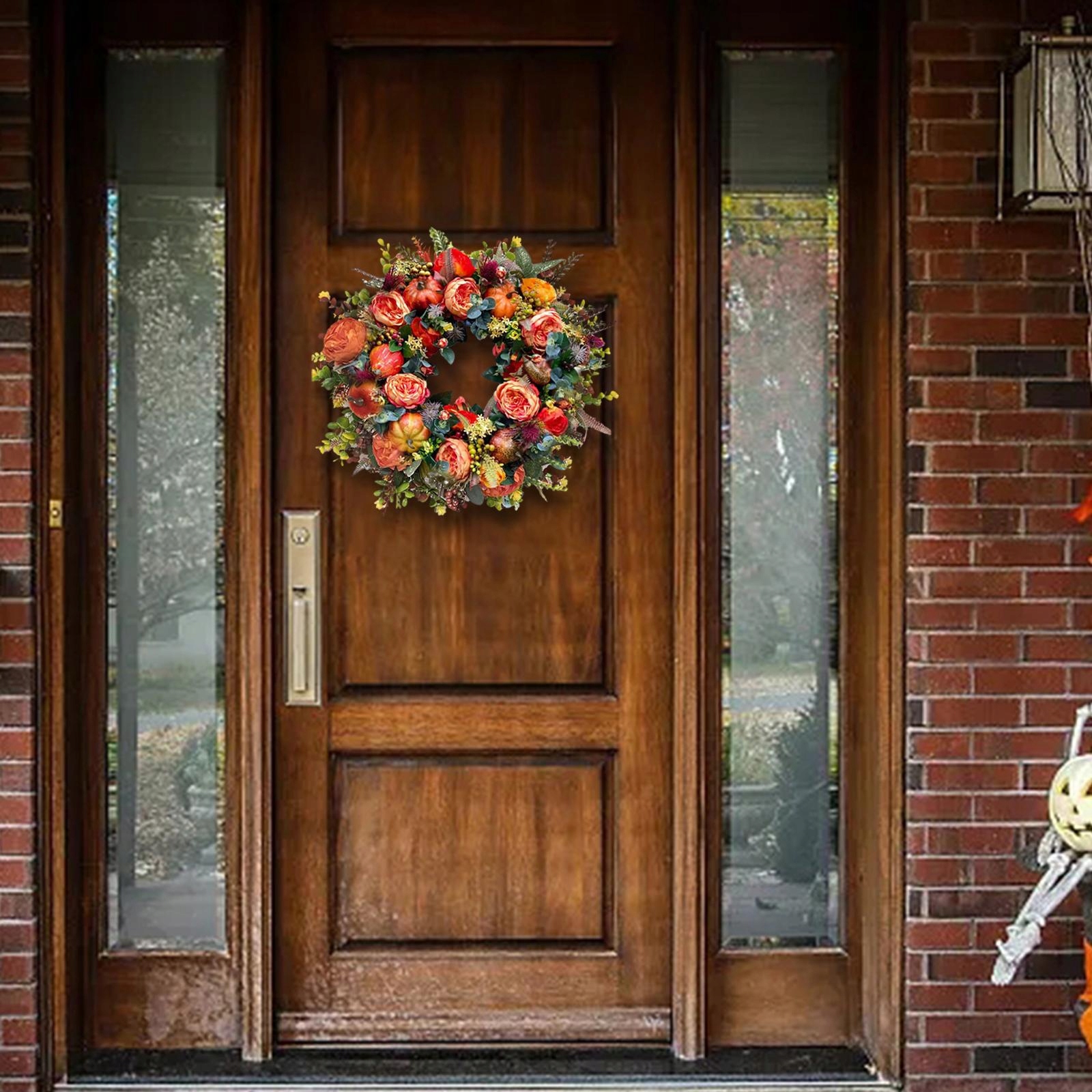 [можливість] вінок для осінніх вхідних дверей, придатних для прикраси будинку, спальні, салону, стін, вікон, садових дверей тощо. Технічне обслуговування для збереження його кольору та реалістичного зовнішнього вигляду