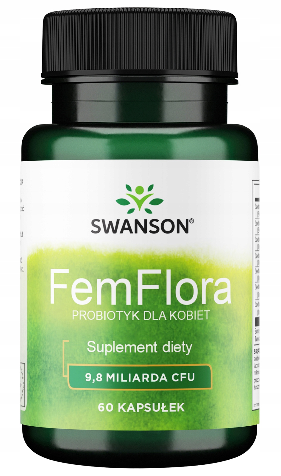 Дієтична добавка Swanson Femflora b> - унікальний продукт, призначений для жінок. Він містить багато штамів пробіотичних бактерій роду Lactobacillus. Одна порція препарату забезпечує майже 10 мільярдів КУО бактерій. Перевагою продукту Swanson є безпечний і простий склад, який не містить шкідливих речовин.
