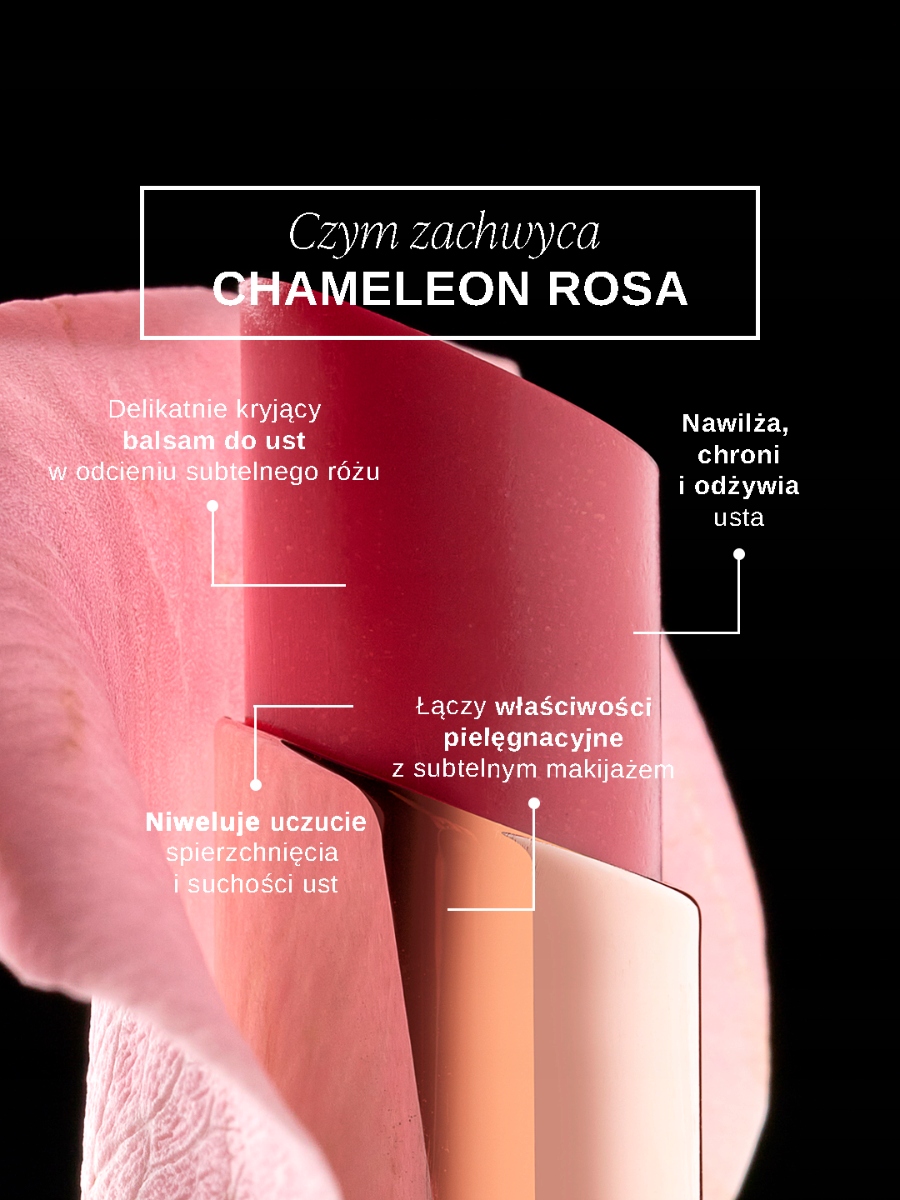 Побачте самі, як за допомогою одного продукту для губ ви можете забезпечити їм інтенсивне зволоження та розгладження, зробивши їх м’якими та блискучими. Вибравши CHAMELEON ROSA, ви надасте своїм губам регенеруючий і відновлювальний ефект, який глибоко живить навіть дуже сухі губи.