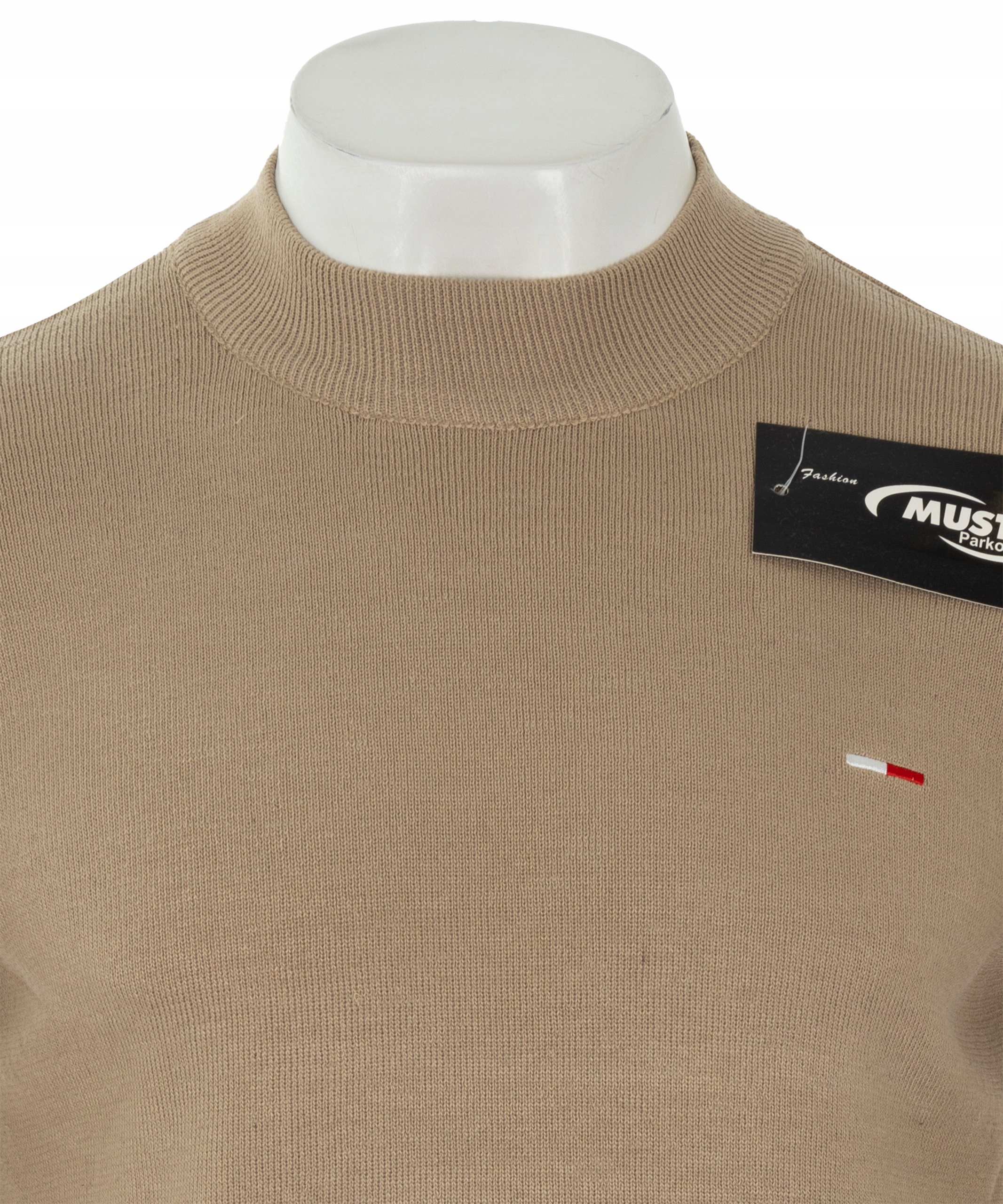 SWETER MĘSKI ELASTYCZNY BEŻOWY PÓŁ-GOLF KLASYCZNY