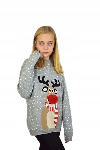 SWETER ŚWIĄTECZNY DZIECKO SZARY RENIFER NOS 9/10