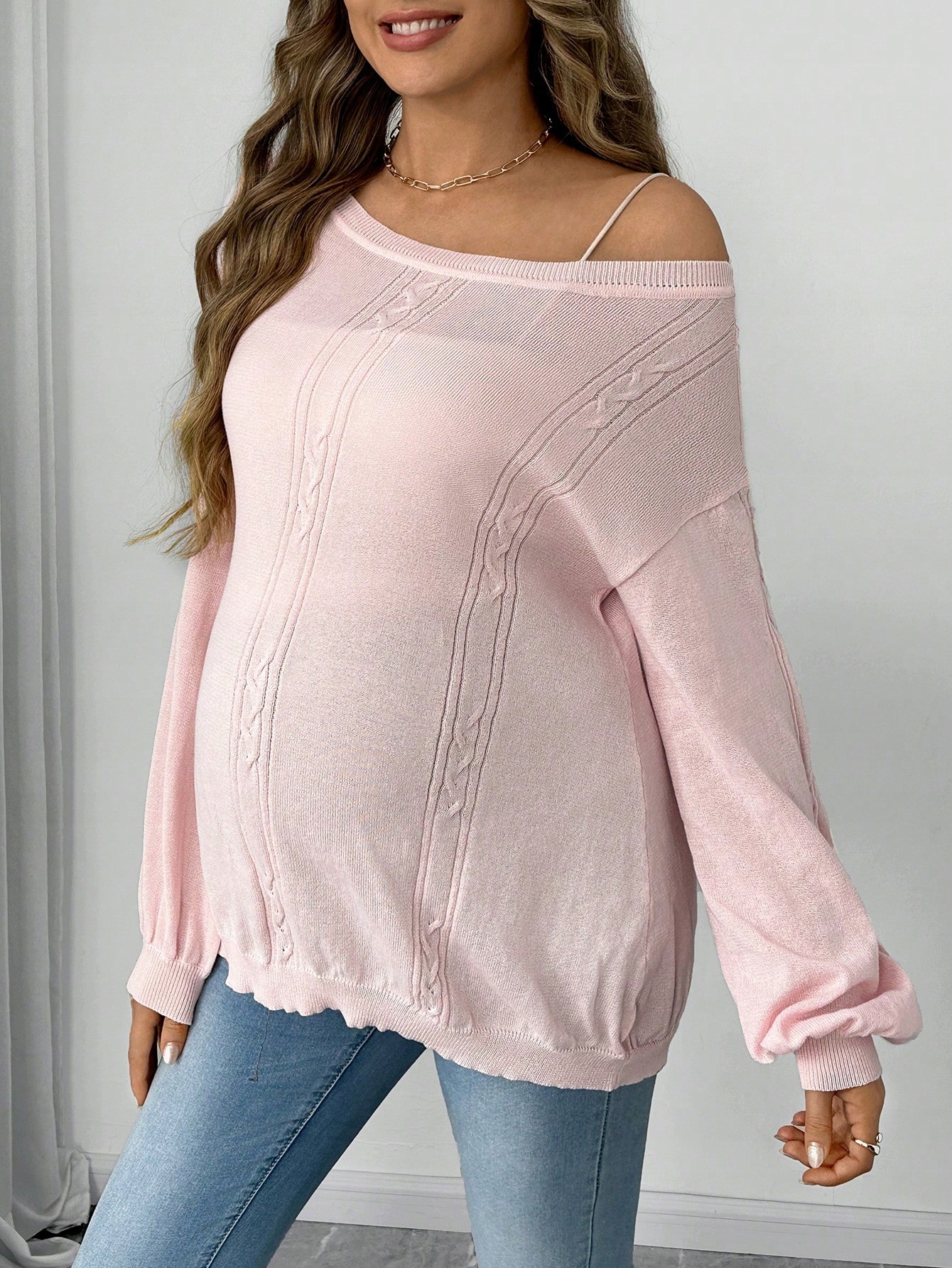 SWETEREK CIĄŻOWY NA JEDNO RAMIĘ RÓŻOWY CASUAL SHEIN S 36