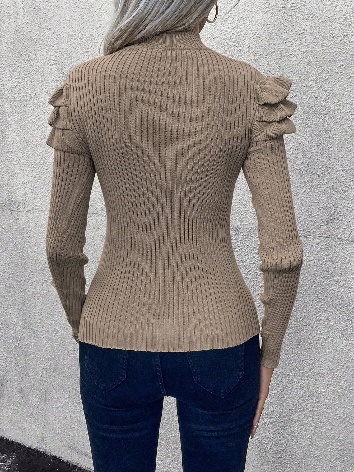 SWETEREK PRĄŻKOWANY ZE STÓJKĄ Z FALBANKAMI BRĄZOWY CASUAL SHEIN M 38