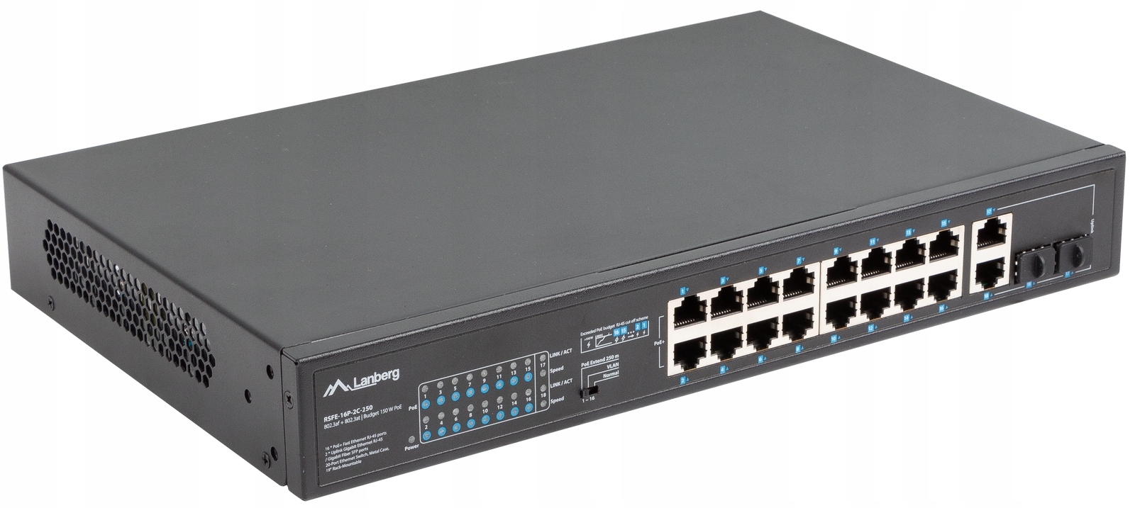 LANBERG SWITCH 16X 100MB POE+/2X COMBO UNMANAGED RACK 19" GIGABIT ETHERNET 250W