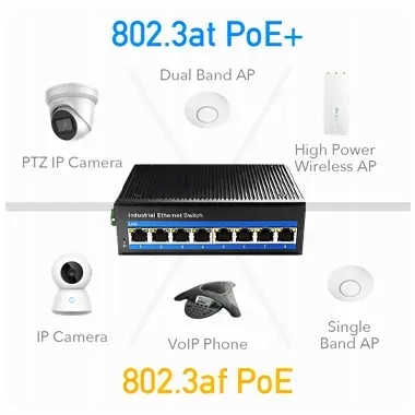 - 8-портом POE, послуга 802.3at/af, макс. 85 ℃