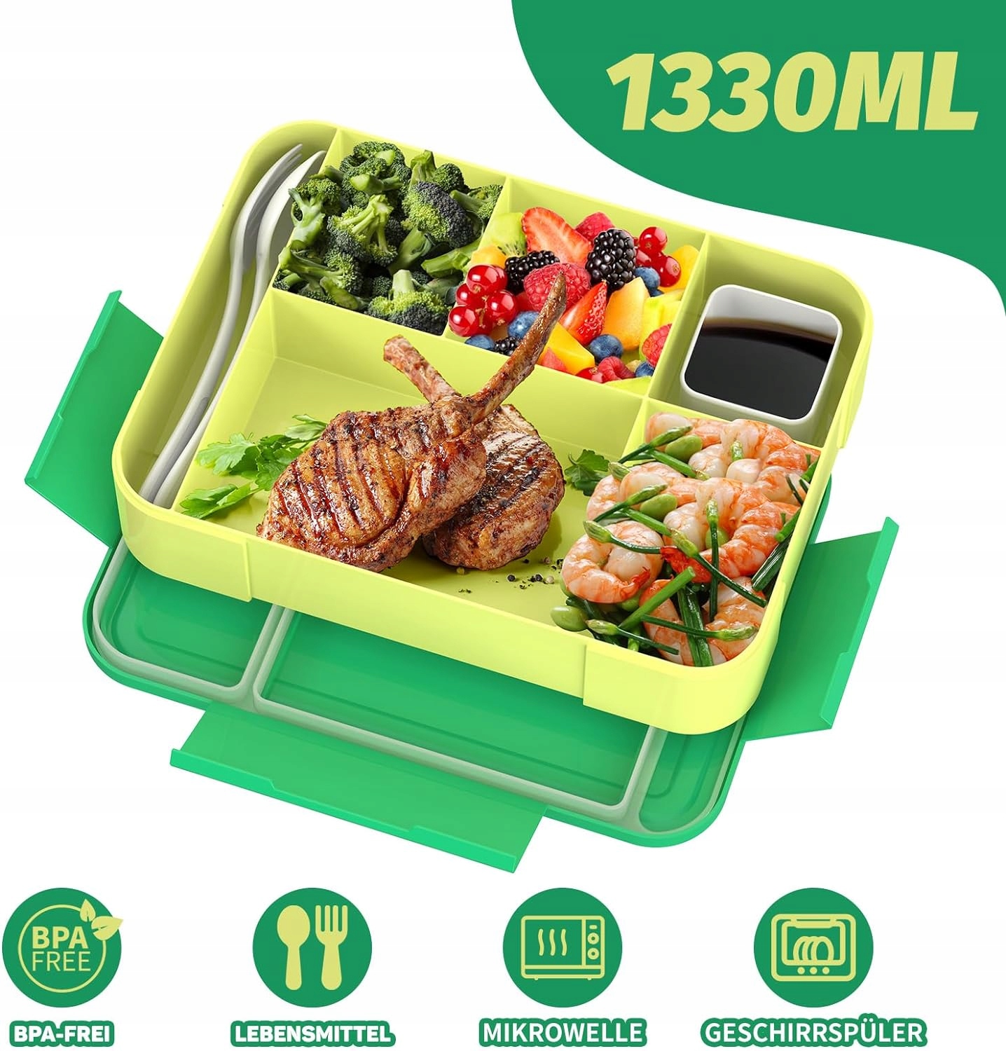 Swviodmt Lunch Box для дітей з відсіками, 1300 мл зеленого