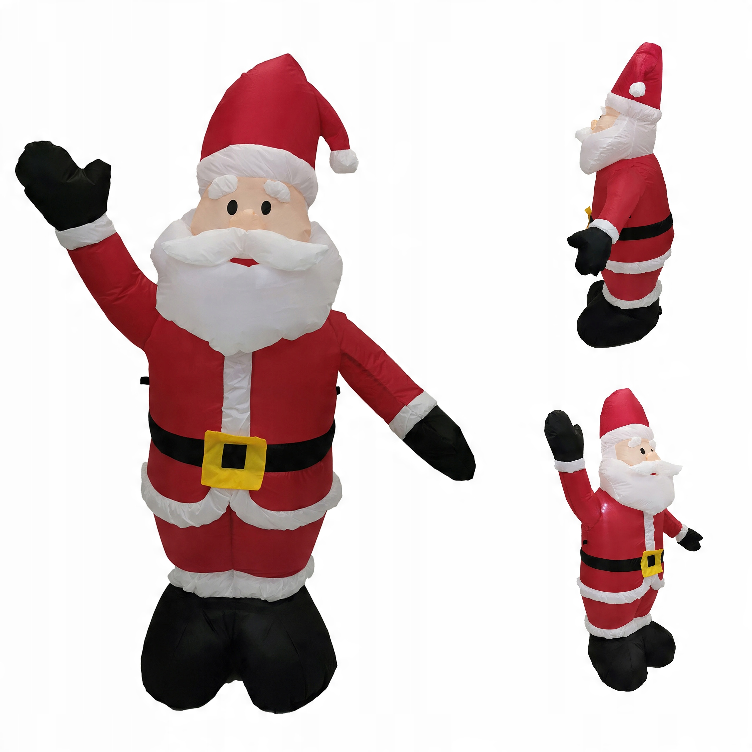 Санта-Клаус підходить як для внутрішнього, так і для зовнішнього використання та надувається за допомогою електричного насоса. З обох сторін фігурки Діда Мороза є люверси, до яких можна прив'язати шнурки, що гарантує стійке і вертикальне положення. За потреби ви можете додати додаткові мішки з піском або обважнювачі, посунувши блискавку внизу фігури Санти.