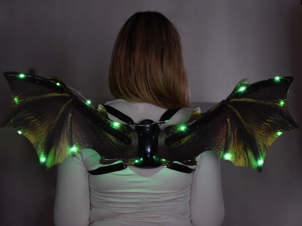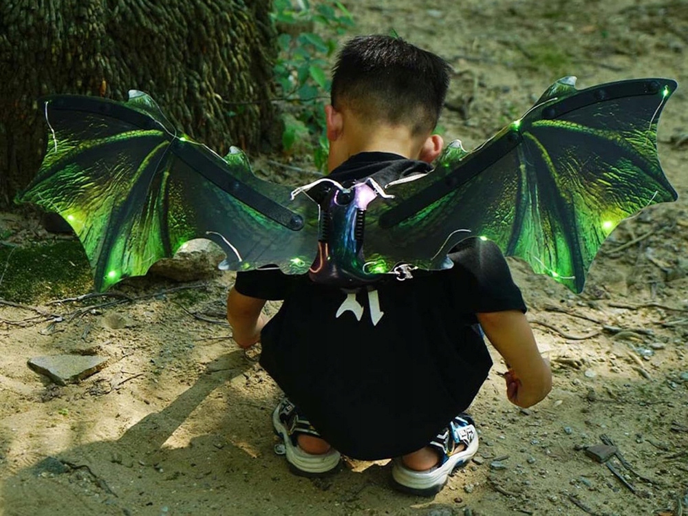 - Крила дракона зі звуком та світлодіодним підсвічуванням - пропозиція для кожного шанувальника казки "Як приборкати дракона!" Крила дракона зі звуком і світлодіодним підсвічуванням - ідеальна іграшка для кожної дитини, яка мріє потрапити в роль Гикавки з казки "Як приборкати дракона". Glowing Wings — інтерактивна іграшка, яка переносить дітей у чарівний світ фантазії та пригод. Ці незвичайні крила оснащені ефектним світлодіодним підсвічуванням, завдяки якому маленькі діти відчують себе справжніми драконами та динозаврами. Після натискання кнопки, розташованої між одним і іншим крилом, вони включаються. Спочатку крила починають махати, світитися, і можна почути звуки дракона, коли ви знову натискаєте кнопку, крила також махають, світяться, але звуку не виходить. Гра з крилами не тільки розвиває дитячу уяву та творчі здібності, а й спонукає їх до активного руху та ігор на свіжому повітрі. Завдяки цьому виробу кожен день стає сповненим чарівництва та пригод. Специфікація: - панель з кнопкою ввімкнення/вимкнення зі звуком - зручне надягання та носіння - регульовані знімні лямки - пластикова структура крил! наповнювач крил - штучний матеріал із зображеннями та кольорами зелених крил дракона, легко підтримувати в чистоті - світлодіодне освітлення - джерело живлення 4 x 1,5 В AA (не входить в комплект) - два режими гри - перший з підсвічуванням, помахом і звуком, другий з освітлення та рух крил Розміри крил: - розмах 85 см - висота 27 см У набір входять: - крила - джгут - інтерактивна панель - світлодіодне освітлення - викрутка Гра з крилами не тільки розвиває дитячу уяву та творчі здібності, але й спонукає їх до активної діяльності. рухатися та грати на свіжому повітрі. Завдяки цьому виробу кожен день стає наповненим чарівництвом і пригодами! Світяться крильця ідеально підійдуть для костюмованої вечірки, під час вистави в дитячому садку, на домашньому святі, є маса ідей для використання крил. Кожна маленька дитина буде в захваті від такого реквізиту.