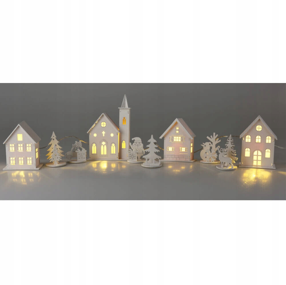 - Ефективне світлодіодне освітлення: побудовані -в теплі білі світлодіоди створюють затишну атмосферу, ідеально підходять для зимових вечорів. Освітлення додає магію і робить будинки схожими на казку.