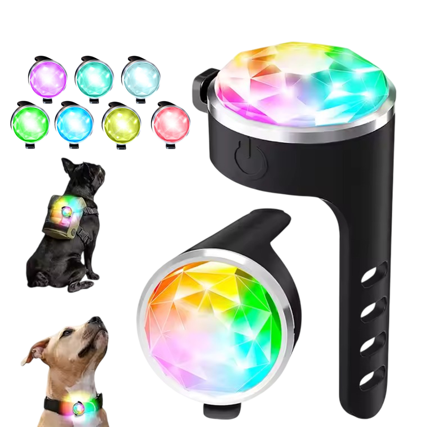Сяюча світлодіодна лампа на комірі брекетів собаки світить у темряві