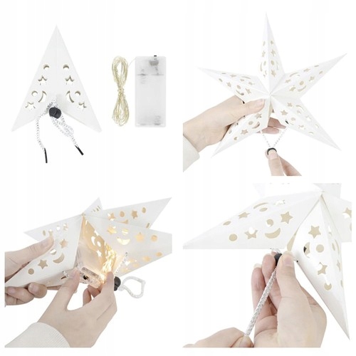 - 3D -картон OpenWork - тривимірна світлодіодна зірка виготовлена з картону з відкритим робіт. Відкрита робота має зірки та вирізки місяців. Таке освітлене вітраж - це тонка легка точка під час різдвяної вечірки. Ілітовані вирізи та візерунки прекрасно розташовані на стінах та стелі, створюючи незабутній та ефективний настрій.