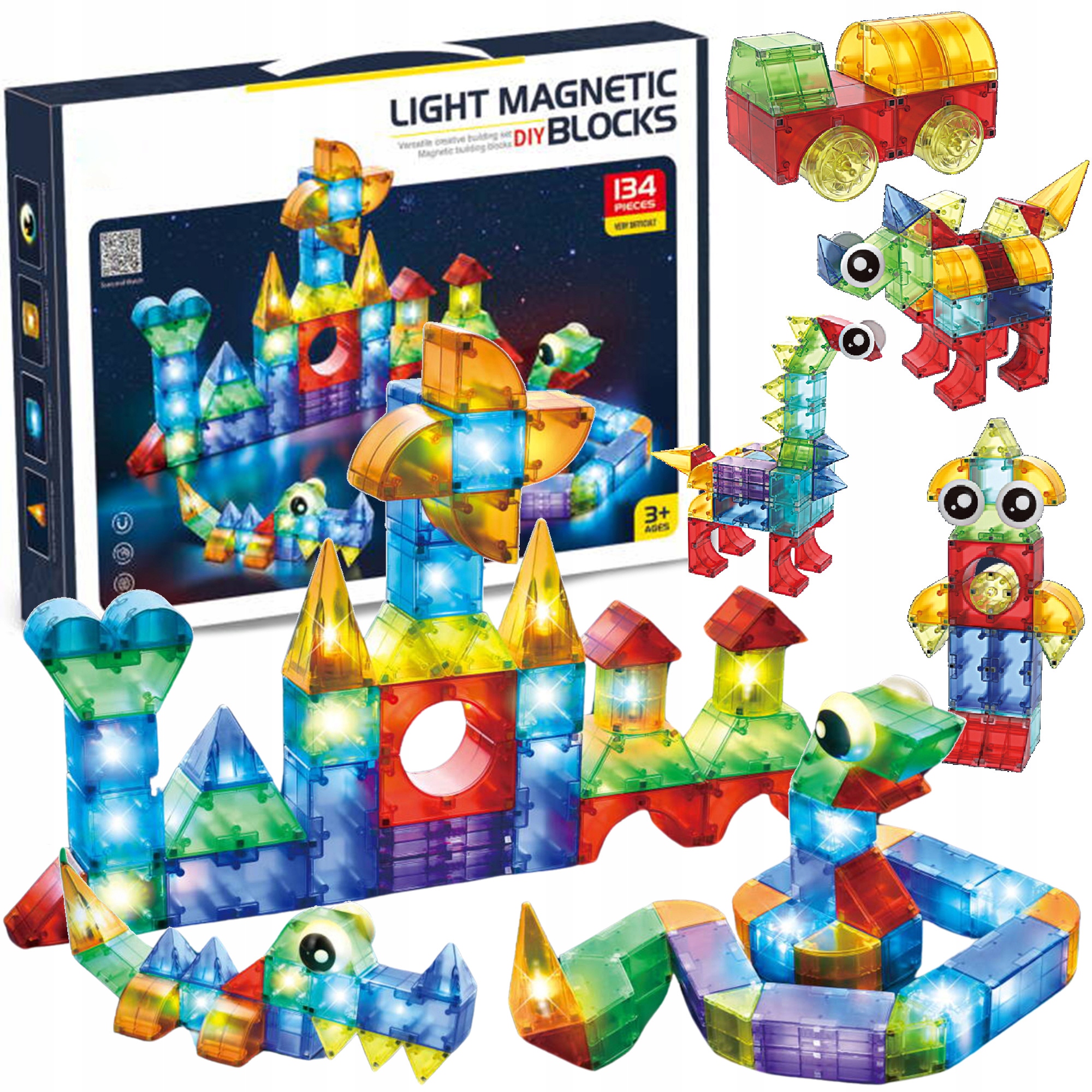 Сяючі магнітні блоки 3D фігури світиться набором XL 134 EL блоків.