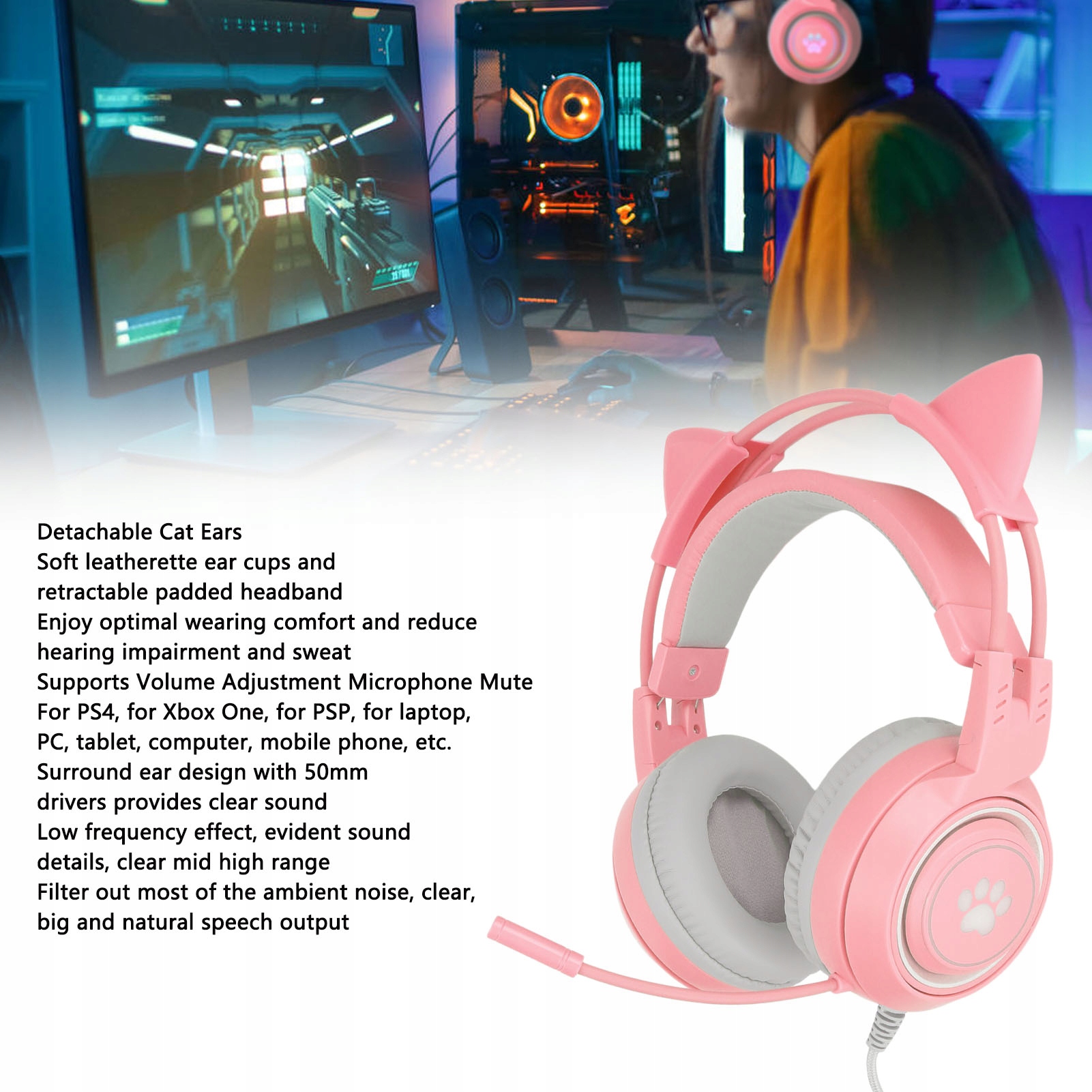 3. [Новий дизайн котячих вушок] Ігрова гарнітура має знімні котячі вушка, практичні для хлопчиків і дівчаток; М’які амбушюри та висувна пов’язка на голову забезпечують оптимальний комфорт під час носіння для кожного гравця, зменшуючи сухість і потовиділення.