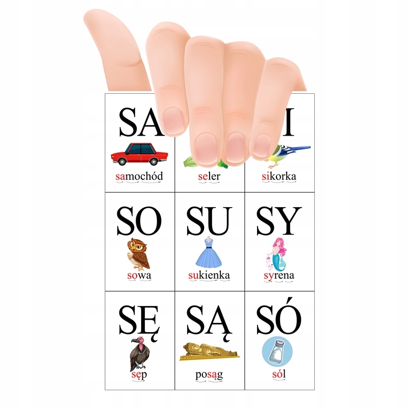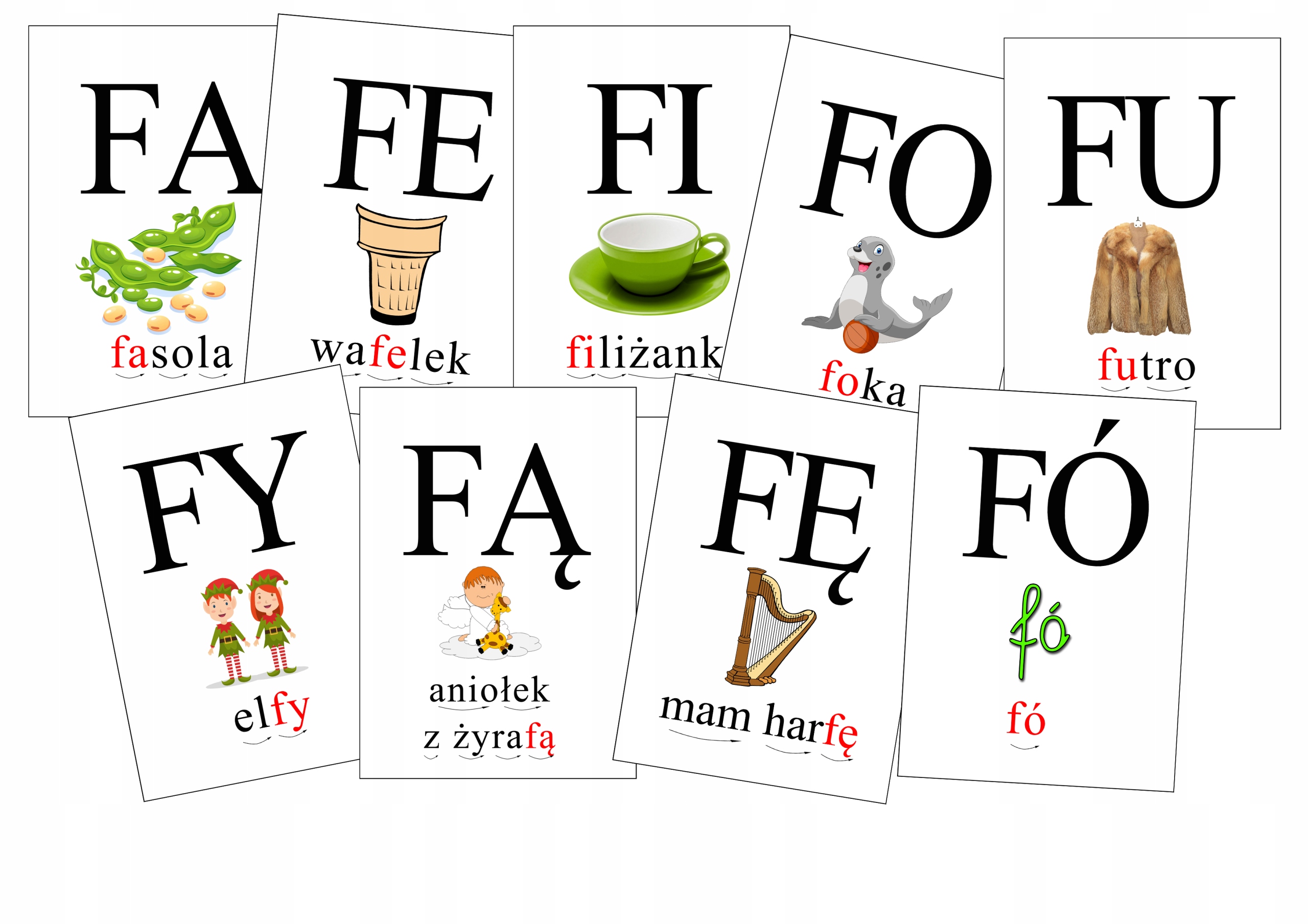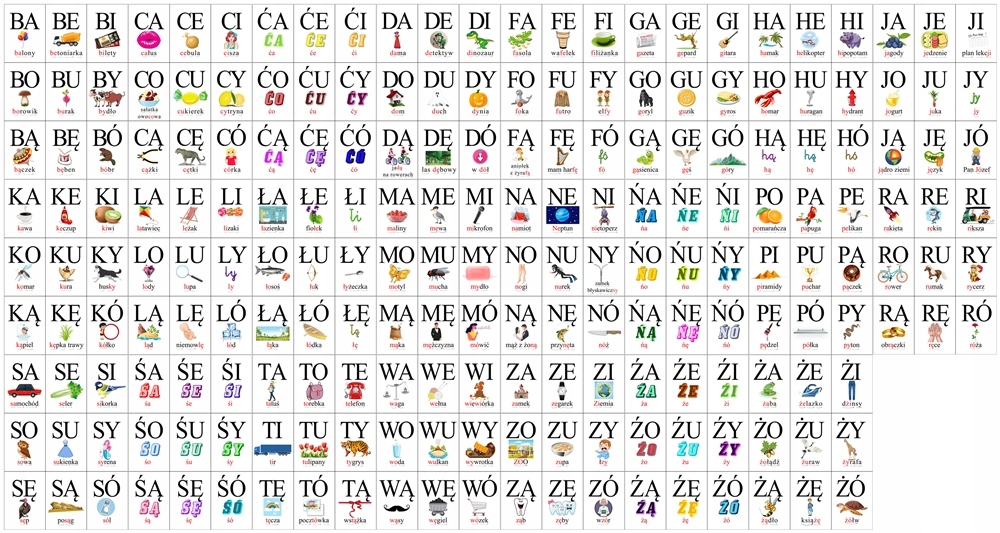 - склади для букв (B, C, Ć, D, F, G, H, J, K, L, Ł, M, N, Ń, P, R, S, Ś, T, W , Z, Ź, Ż)