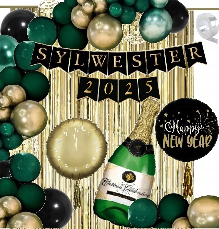 SYLWESTER balony zestaw dekoracje na Nowy Rok KURTYNA