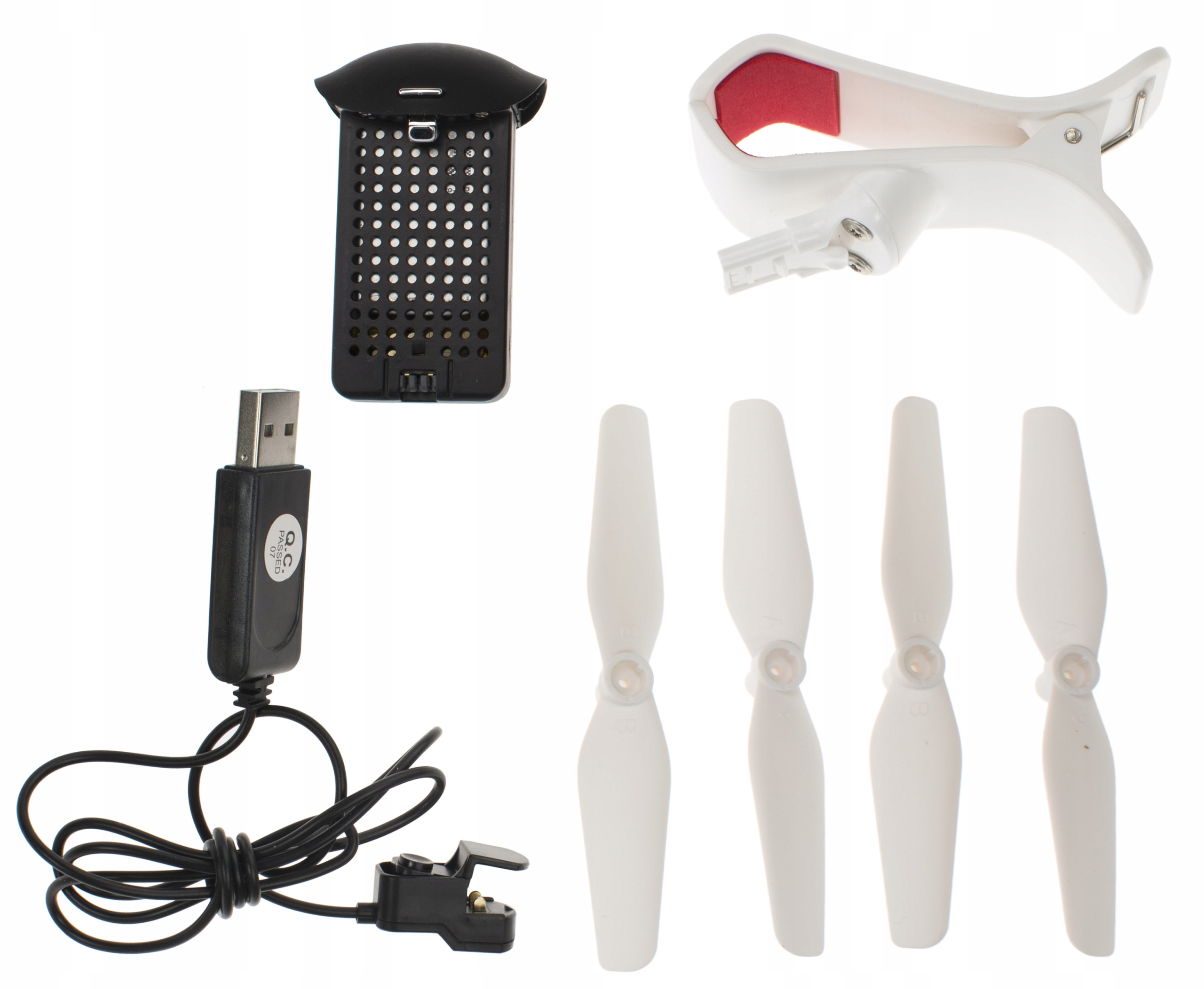 Набір включає: - розважальний дрон Syma X23W - Пульт - Акумулятор - USB кабель для зарядки дрона - Запасні пропелери - Посібник користувача
