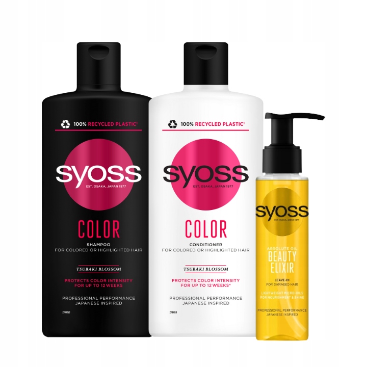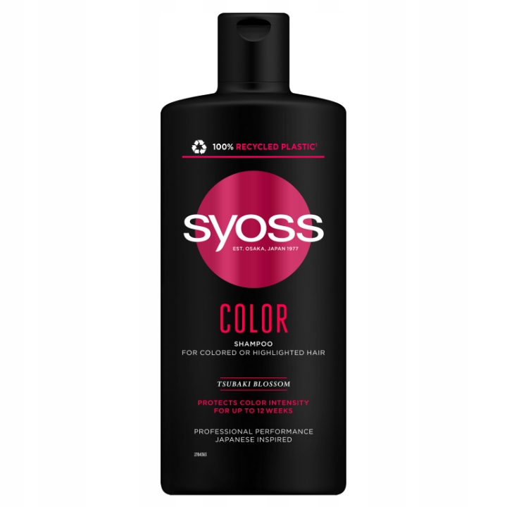 Шампунь для волосся Syoss Color Syoss Color з квіткою цубакі в японському стилі для фарбованого та освітленого волосся.