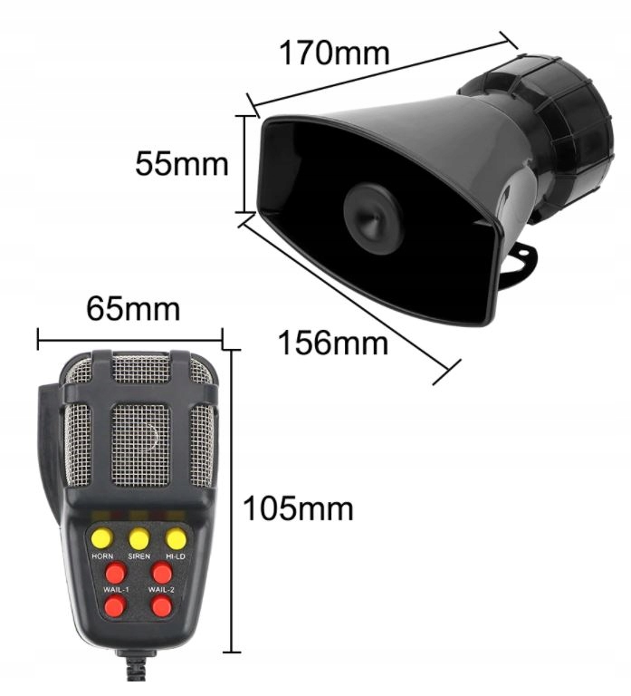 Syrena Fanfara 7 тонн 12В Мегафон Клаксон налаштовує 100 Вт Голосова сила! Вау ефект