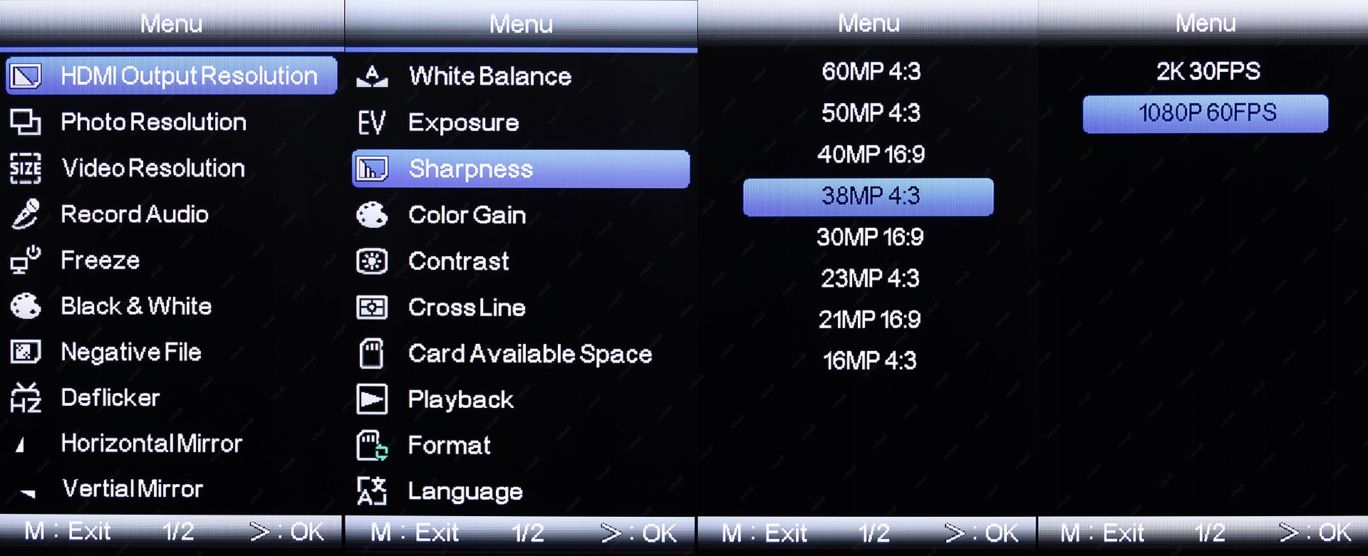 - роздільна здатність фото: 60 МП 4:3 (9000x6752), 50 МП 4:3 (8168x6128), 40 МП 16:9 (8432x4744), 38 МП 4:3 (7120x5344), 30 МП 16:9 (7312x4112), 23 МП 4:3 (5544x4160), 21 Мп 16:9 (6112x3440), 16 Мп 4:3 (4608x3456)