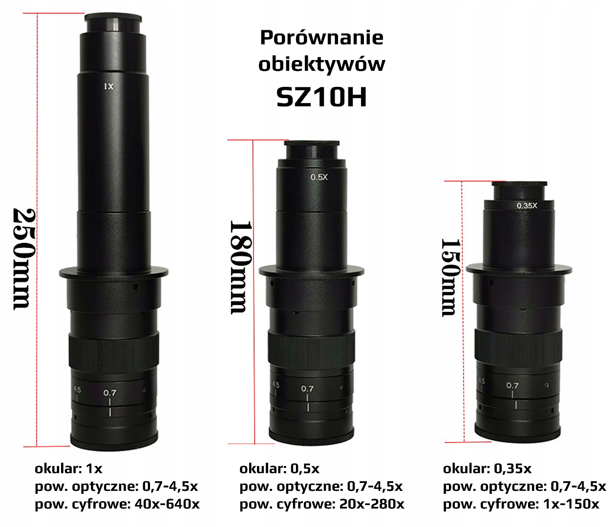 - об'єктив зі збільшенням 0,7-4,5x і 1x окуляр