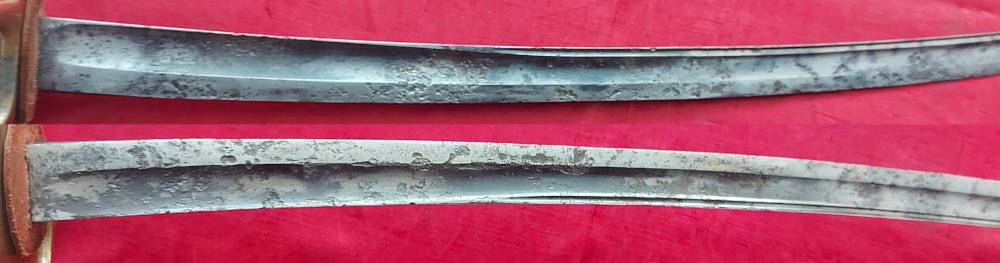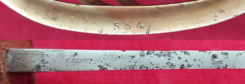 Копія, яку видно на фото. Лезо має видимі ямки, але механічно стабільне. Напис на тильній стороні леза видно лише частково, оскільки він був трохи відшліфований. Ручка виготовлена з латуні, а шкіра та обшивка на ручці виготовлені з латуні. Також шкіряна накладка під поперечину. Під накладкою, поруч із хрестовиною, видно невеликий підпис. На хрестовині вибитий номер 554.
