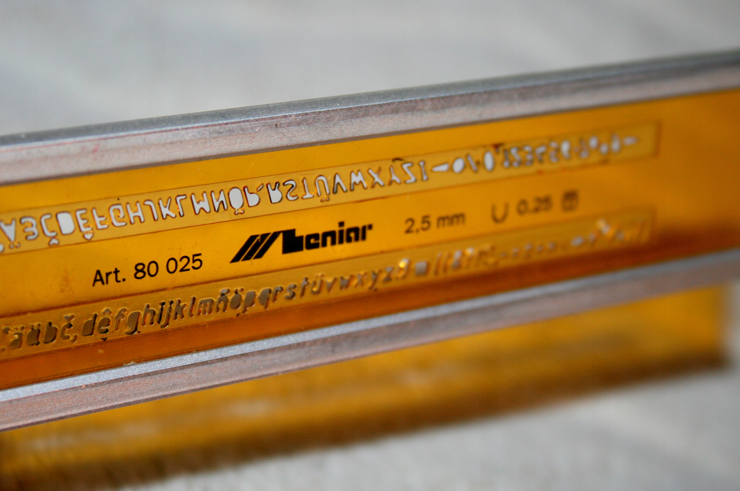 Шаблон із прозорого помаранчевого пластику.