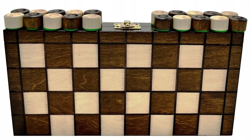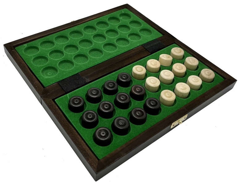 Шашки з деревини граба, лаковані та обклеєні зеленим фетром.