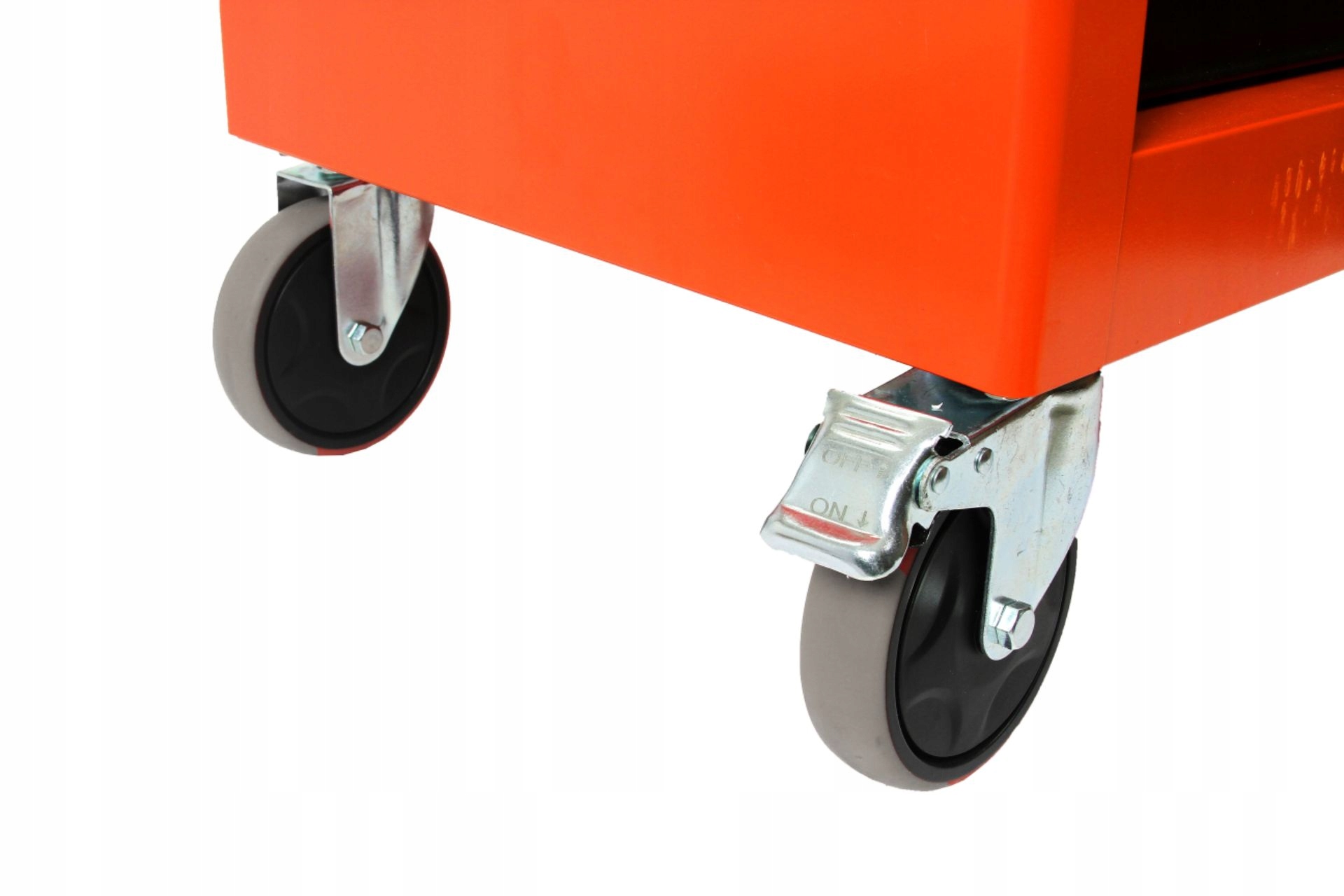 4 тверді коліщатка, включаючи 2 поворотні, що полегшує маневрування шафою. Візок для майстерні оснащено сильним гальмом, за допомогою якого ми можемо зупинити шафу у фіксованому положенні.