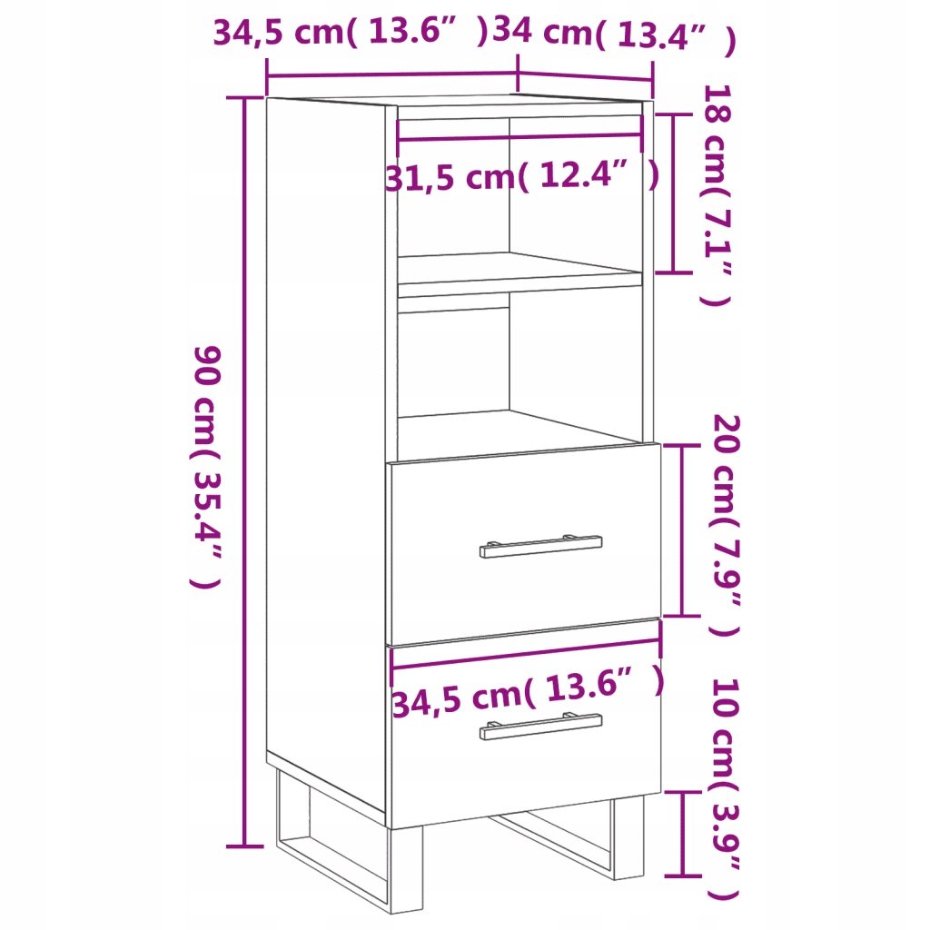Szafka, szary dąb sonoma, 34,5x34x90 cm materiał drewnopochodny