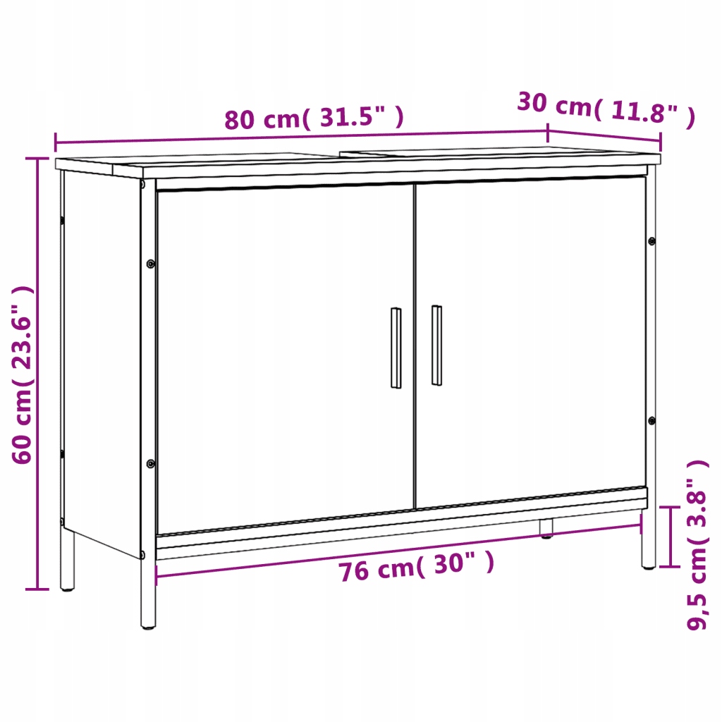 Szafka pod umywalkę, brązowy dąb, 80x30x60 cm