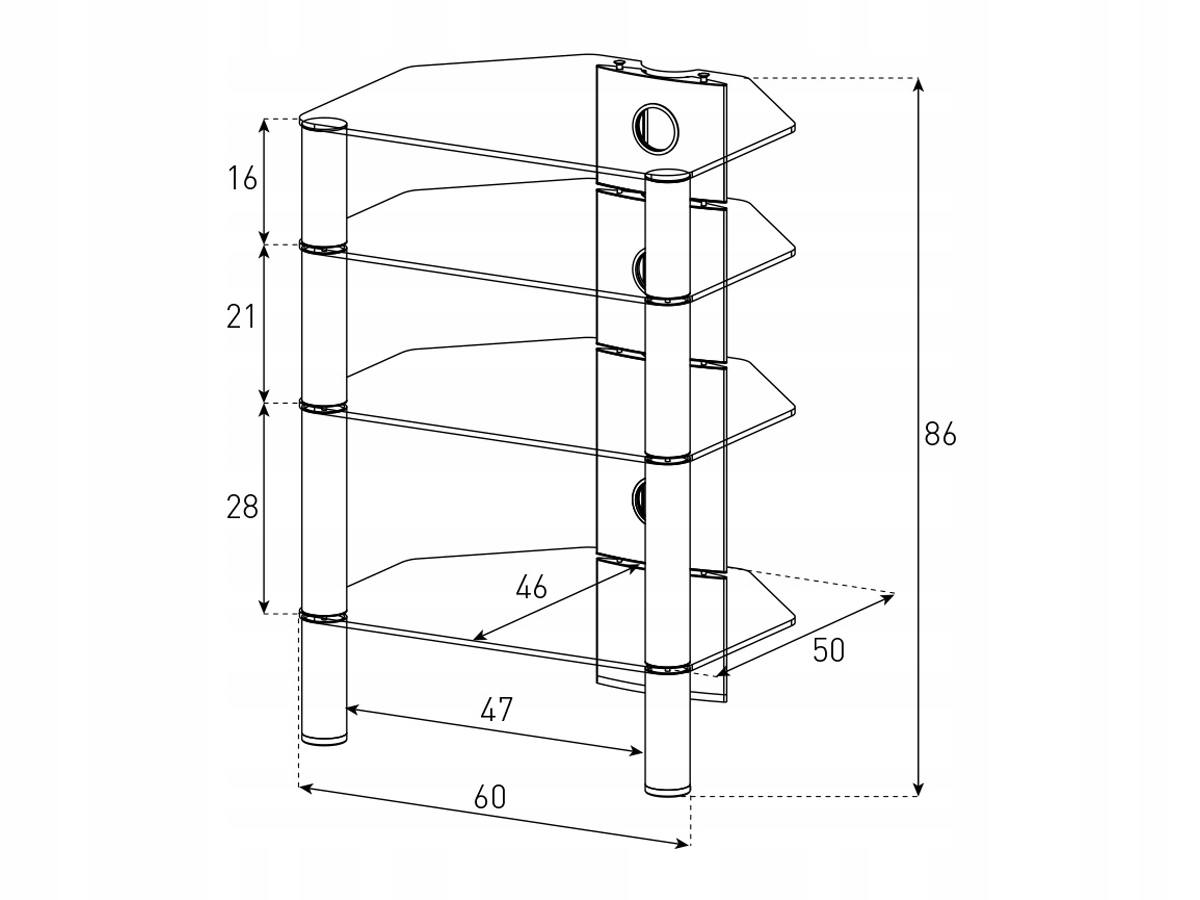 Sonorous RX2140 - стіл HI-FI з чотирма полицями, структурою з високоякісного алюмінію круглої та овальної форми, полиці із загартованого скла з полірованими краями шириною 60 см. Стіл оснащений кабельною системою.