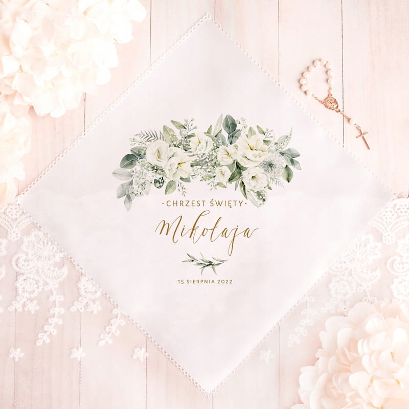 SZATKA BIAŁA DO Chrztu Świętego z imieniem ROMB