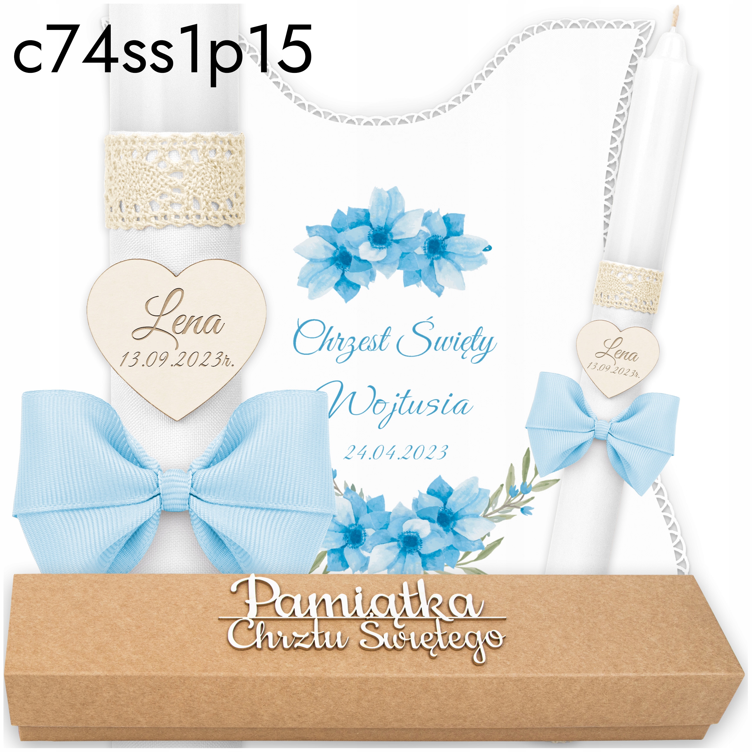 Szatka i Świeca do Chrztu Świeca Na Chrzest + pudełko na świecę * IHS *