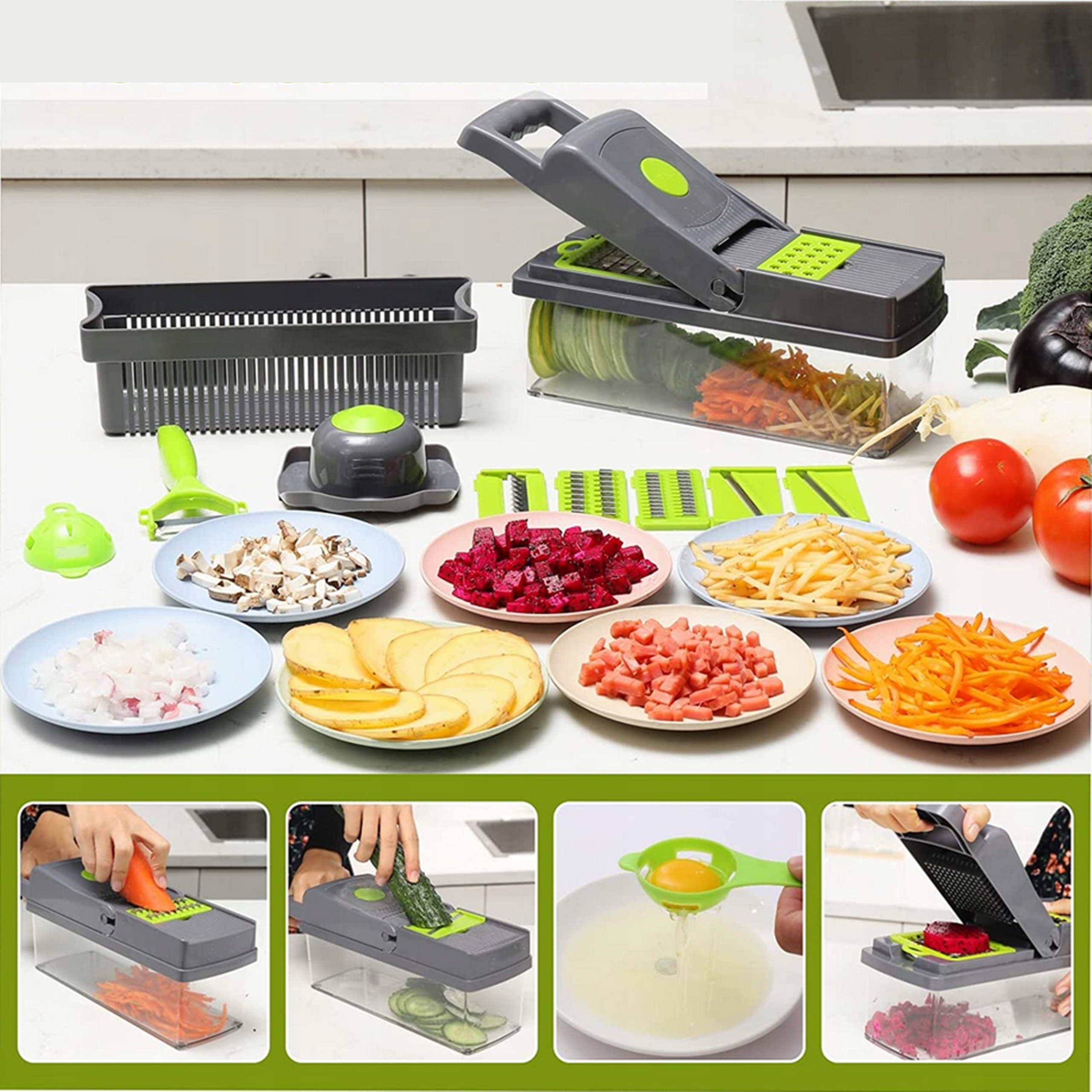 ✅Ідеальний кухонний помічник - Овочерізка чудово працюватиме з овочами, фруктами, сиром та яйцями. Пристрій виготовлено з високоякісного матеріалу ABS, який є повністю безпечним і призначений для контакту з харчовими продуктами.