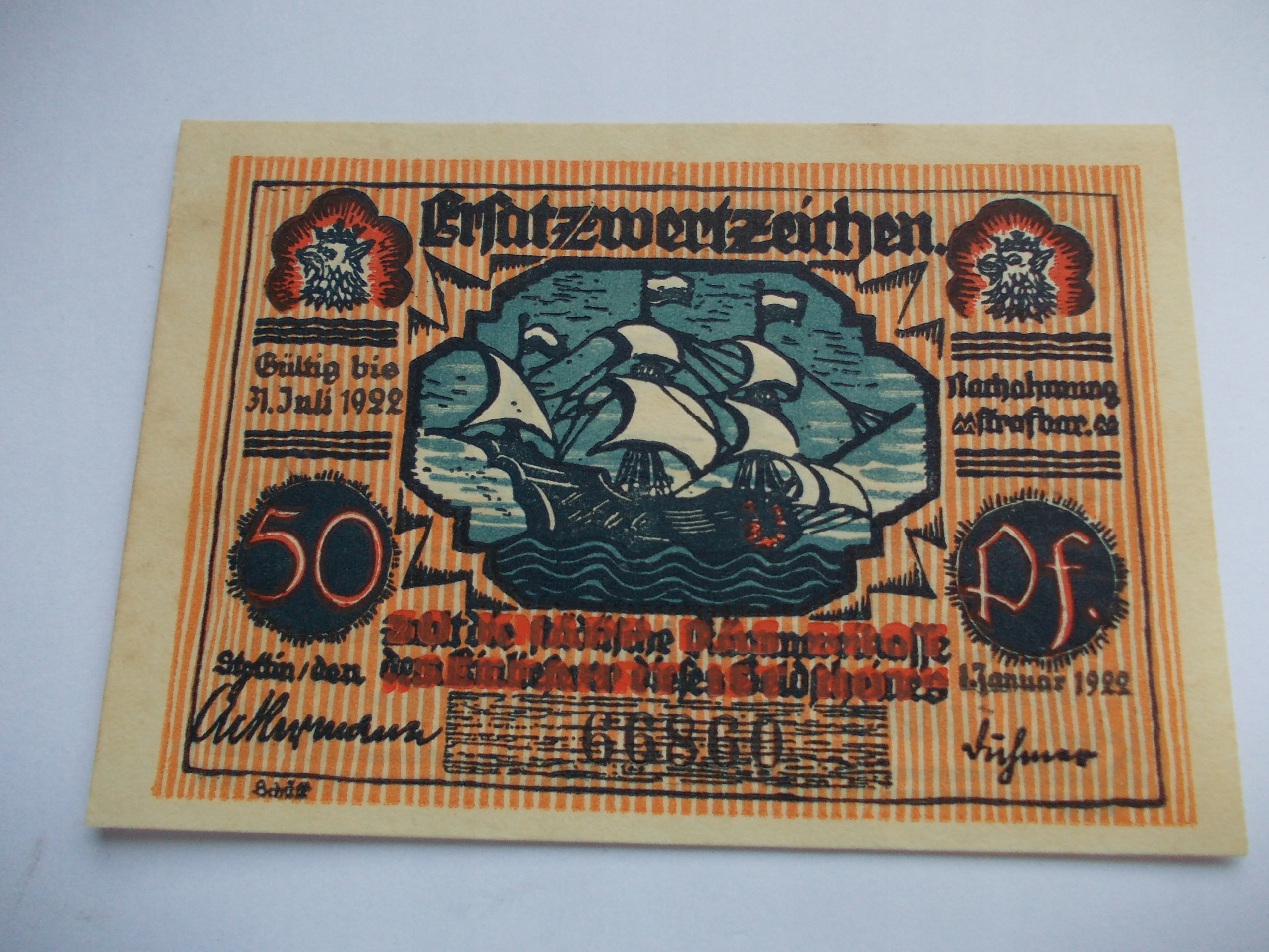 Заказывая «SZCZECIN 50 PFENNIG 1922» данный товар из каталога «Бони и нотгельды» вы можете быть уверены, что после оформления заказа, доставки в Украину, вы получите именно то, что заказывали, в оговоренные сроки и европейского качества.