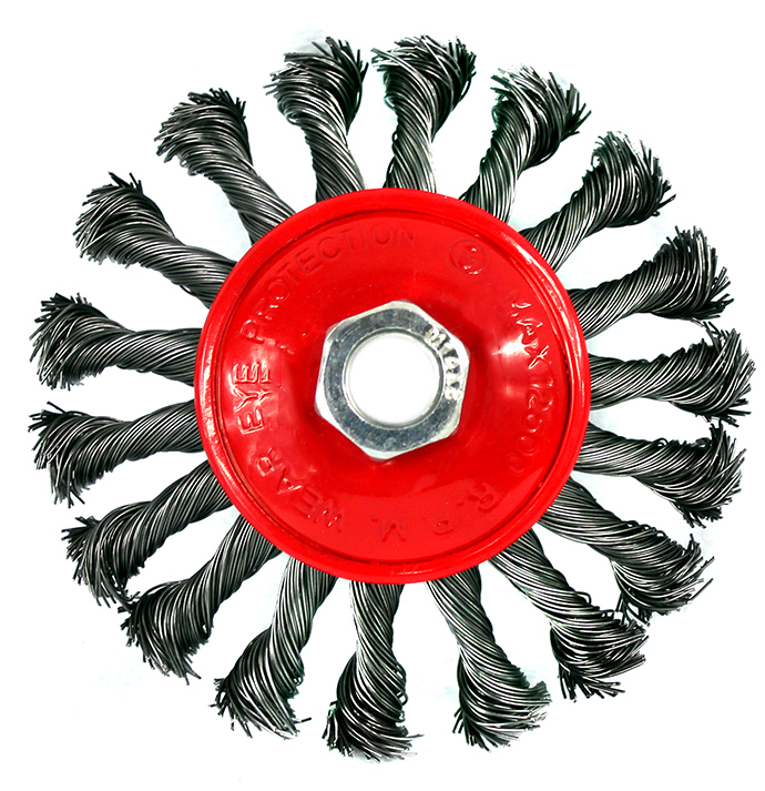 Дротяні щітки виготовляються із високоякісного загартованого сталевого дроту. Оптимальний засіб для обробки важкодоступних місць (завдяки конічній формі кисті). Для інтенсивної роботи з чищення на високій периферійній швидкості на менших металевих поверхнях, пазах або краях, як-от видалення сильної корозії, видалення фарби, шлаку, задирок, окалини та очищення зварних швів.
