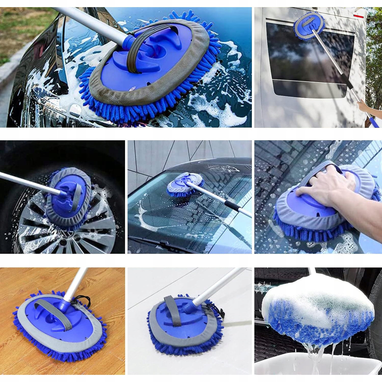 SZCZOTKA TELESKOPOWA DO MYCIA AUTA SAMOCHODU MOP MIKROFIBRY ZESTAW 45-160cm