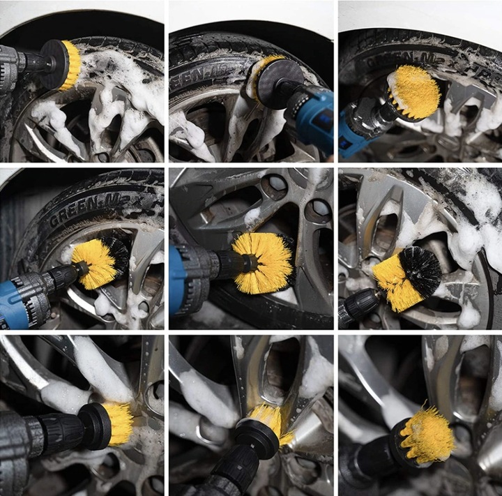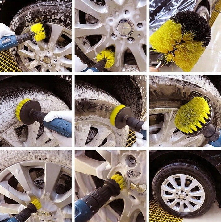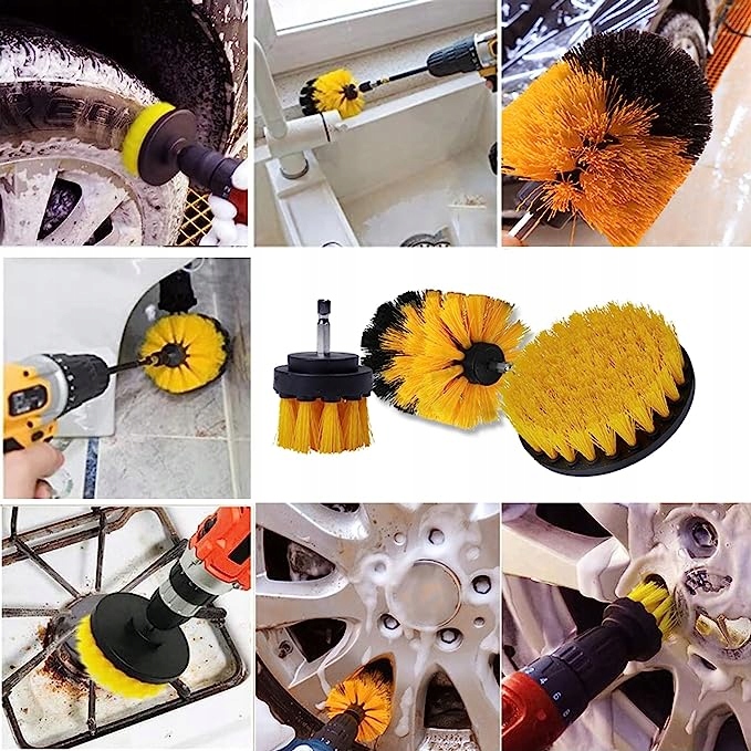 Набір із 3 щіток працюватиме за будь-яких умов. Він ідеально підходить для очищення найбільшого бруду, наприклад затирки. Крім того, він чудово підходить для позбавлення від бруду на дисках або колесах автомобіля.