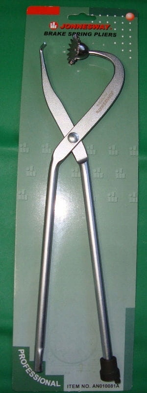 Характеристики: Кліщі використовуються для розбирання та встановлення пружин гальмівних колодок у гальмівних барабанах. Одну губку плоскогубців закріплюють за гальмівну накладку, а потім іншу губку плоскогубців закріплюють за пружину. Спеціальний зубчастий диск, що самовирівнюється, полегшує встановлення, одночасно захищаючи гальмівну накладку