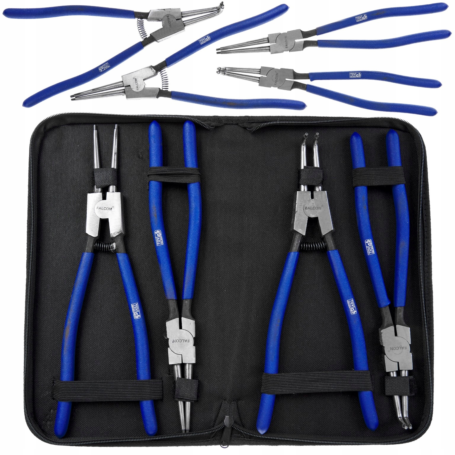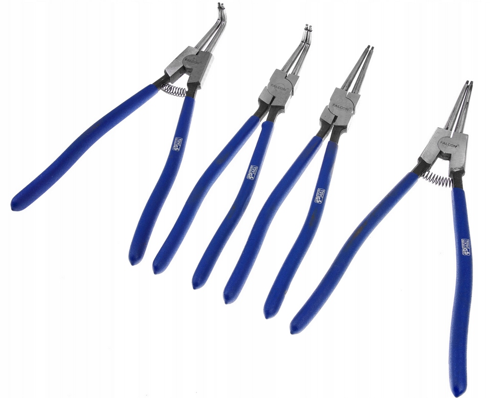 Щипці Seger використовуються для складання та демонтажу стопорних кілець. Існує 2 види цих захистів: внутрішня (розширюється всередину гільзи) і зовнішня (затискна, назовні вала). Набір адаптований для роботи з внутрішнім і зовнішнім кільцями. Має плоскогубці з загнутими і прямими кінчиками. Плоскогубці виготовлені з міцної та міцної хромованадієвої сталі та мають прогумовані ручки.