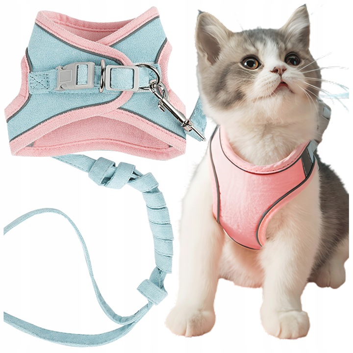 SZELKI DLA KOTA PSA BEZUCISKOWE ODBLASKOWE + SMYCZ SZELECZKI SPACEROWE S